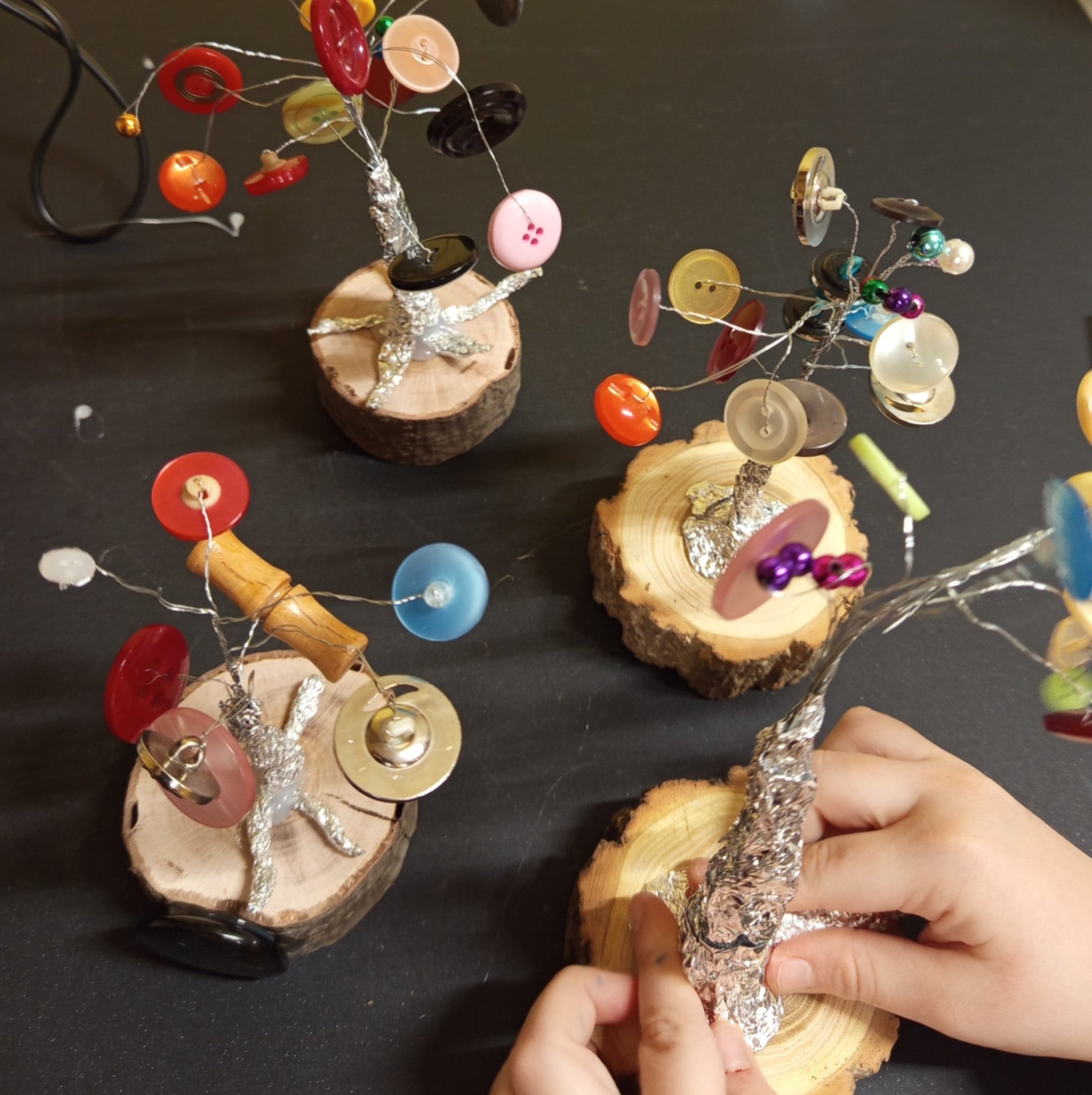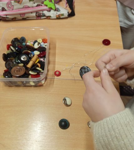 Z tej okazji grudniowe spotkanie kreatywnych zajęć literackich dla dzieci "Fantazja" bibliotekarka Filii nr 1 Ksawera zadedykowała właśnie guzikom. Guzik w literaturze i historii - złapany na widok kominiarza czy znaleziony na drodze – guzik od wieków jest symbolem szczęścia i pomyślności. Jak opowiada Charles Panati w "Niezwykłych dziejach zwykłych rzeczy", guzik ma dla ludzkości znaczenie już od setek lat. Guzik ma również swoje szczególne miejsce w "Akademii Pana Kleksa". Kto pamięta słynne guziki w Akademii? My poszliśmy tropem tej magii. Odkryliśmy fascynującą książkę Michała Rusinka "Guzik : o Janie Brzechwie dla dzieci", która opisuje, że podobnie jak Adaś Niezgódka z popularnej lektury szkolnej, mały Janek Brzechwa był kolekcjonerem guzików. Zdobył nawet egzemplarz od płaszcza naczelnika stacji kolejowej, w sposób którego oczywiście nie pochwalamy. To wspaniała opowieść o życiu, twórczości i inspiracjach autora jednej z ulubionych książek dzieci. Podczas zajęć uczestnicy zainspirowani tym magicznym przedmiotem, stworzyli przepiękne guzikowe drzewka szczęścia.