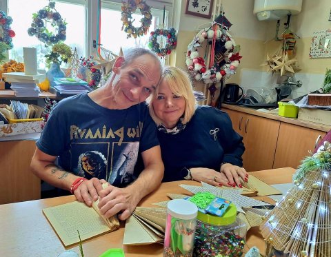 Właśnie w takim klimacie pracują uczestnicy Warsztaty Terapii Zajęciowej przy Stowarzyszeniu Badz z Nami w Będzinie. Aby umilić im ten twórczy czas bibliotekarka Filii nr 9 Podłosie zorganizowała czytające spotkanie. Opowiadania Renaty Piątkowskiej z książki "Gdyby jajko mogło mówić" pasowały idealnie,, wyjaśniając pojęcia związane ze świętami i tradycjami Bożego Narodzenia.