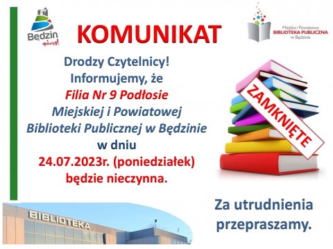 24 LIP Zakończenie inwentaryzacji zbiorów - Wypożyczalnia Główna już otwarta dla Czytelników! Zapraszamy!