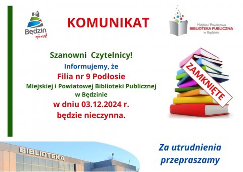 25 LIST Komunikat dot. pracy Filii nr 1 - Ksawera, nr 2 - Warpie oraz nr 3 - Dworzec MiPBP w Będzinie Zapraszamy!