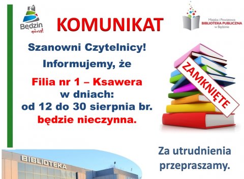 22 SIER Komunikat dot. pracy Filii nr 3 -Dworzec oraz Filii nr 7 - Zamkowe Za utrudnienia przepraszamy.