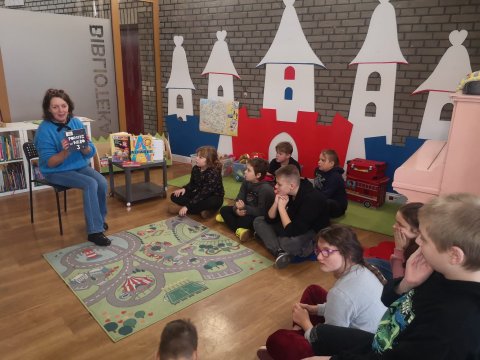 30 LIST Z wizytą w bibliotece Dzieci rozwiązywały krzyżówkę biblioteczną i wcieliły się w rolę bibliotekarza probujac przy tym samodzielnie wypożyczać książki.