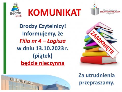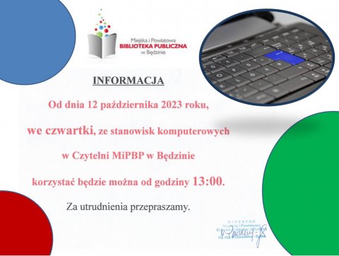 11 PAŹ Komunikat dot. użytkowania stanowisk komputerowych na Czytelni MiPBP w Będzinie Za utrudnienia przepraszamy.
