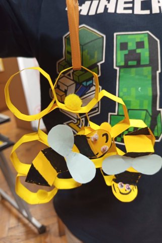 Na koniec, każde dziecko „wyczarowało” własną ozdobę na ścianę – miodowe plastry pełne uroczych pszczółek, które będą przypominać o mądrościach Puchatka w domach naszych uczestników.