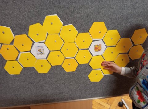 → Budowaliśmy ogromny plaster miodu w ramach wspólnej zabawy.