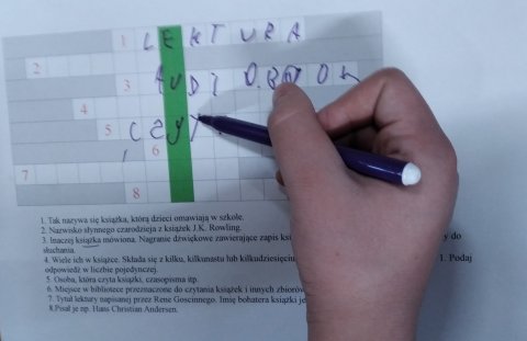 Uczniowie mięli dziś okazję dowiedzieć się jak wiele korzyści przynosi ze sobą czytanie. Jest świetnym ćwiczeniem mózgu, poprawia pamięć i koncentrację, pozwala się zrelaksować i miło spędzić czas. Nasza wyobraźnia dzięki systematycznemu sięganiu po lekturę świetnie się rozwija a zasób słownictwa znacznie się powiększa. Aby sprawdzić swoją wiedzę uczniowie rozwiązali krzyżówkę o bibliotece i książkach.