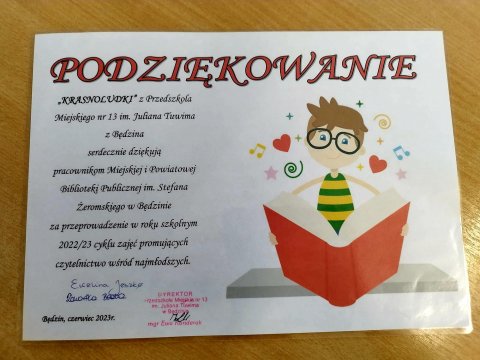 Grupa Krasnoludków z Przedszkola Miejskiego nr 13 w Będzinie odwiedziła dziś oddział dla dzieci i młodzieży będzińskiej biblioteki by uczestniczyć w zajęciach poświęconych twórczości Aleksandra Fredry, którego