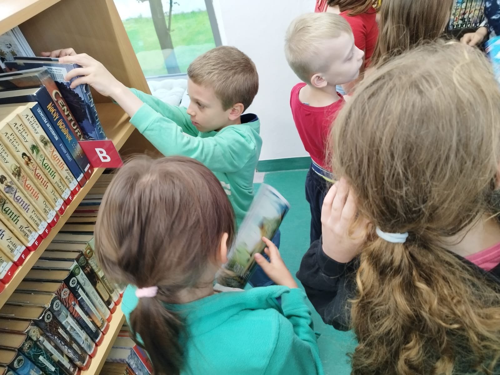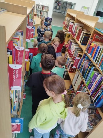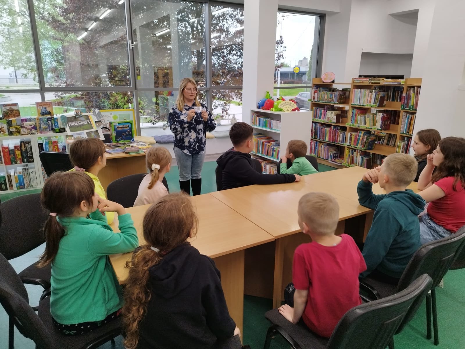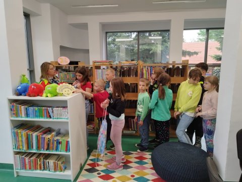 Podczas wizyty w bibliotece dzieci zapoznały się z wypożyczanią dla osób dorosłych oraz czytelnią, dowiedziały się co nazywamy literaturą popularnonaukową i obejrzały prezentowane w bibliotece wystawy. W lubianym przez wszystkie dzieci dziale poznały zasady korzystania z księgozbioru, układ zbiorów na bibliotecznych półkach oraz ofertę kulturalną adresowaną do takich Czytelników jak oni.