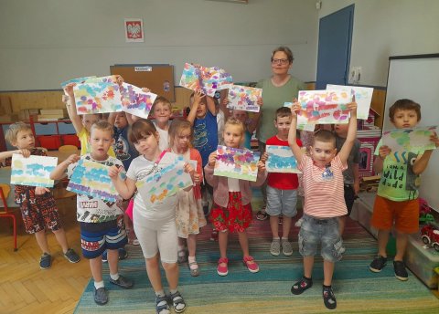 W ramach cyklu zajęć edukacyjnych "Niezawodne wakacje, czyli jak bezpiecznie i wesoło bawić się latem" bibliotekarz Filii nr 3 Dworzec odwiedził w piątek grupę starszaków z Przedszkola Miejskiego nr 9 w Będzinie. Spotkanie rozpoczęło się od zabawy - malowania bibułą wakacyjnych obrazów. Dzieci na kartkach układały różne wzory, a następnie prace zostały spryskane wodą. W czasie, gdy kartki schły, przedszkolaki wysłuchały opowiadania autorstwa Gabrieli Rzepeckiej - Weiss "Gdy pola się zgubi". Śledząc perypetie bohaterki, która wybrała się z rodzicami w podroż do Hiszpanii, starszaki dowiedziały się, jak się zachować, gdy się zgubią. Przede wszystkim powinny poprosić o pomoc kogoś ze służb mundurowych, nie szukać rodziców, tylko czekać, aż oni je znajdą, nie ufać nieznajomym ludziom, być uważnym i nie zbliżać się do jezdni. Na zakończenie przedszkolaki z suchych kartek zdjęły bibułę i zaprezentowały swoje oryginalne, letnie impresje.