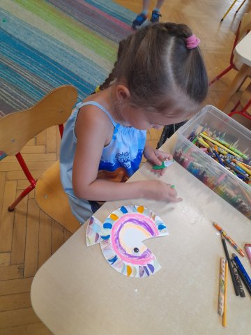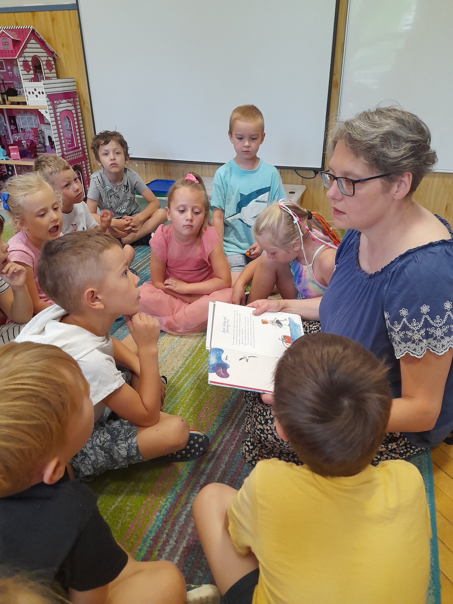 Dziś odbyły się ostanie zajęcia edukacyjne "Niezawodne wakacje, czyli jak bezpiecznie i wesoło bawić się latem" jakie bibliotekarze Filii nr 3 Dworzec przygotowali z myślą o dzieciach z Przedszkola Miejskiego nr 9 w Będzinie. Podobnie jak tydzień temu, dzieci spotkały się z Polą i jej rodzicami. Opowiadanie "Pola na plaży" Gabrieli Rzepeckiej-Weiss pozwoliło uczestnikom zajęć przenieść się nad morze, poczuć wiatr, usłyszeć szum fal i odczuć ciepło słońca. Zaznajomiło również przedszkolaków z bezpiecznymi zasadami zachowania się na plaży, które zostały przez autorkę ujęte w zabawne rymowanki i zalecenia. A oto niektóre z nich: "Załóż czapkę, stosuj krem, by przed słońcem chronić się! Hej pływaku, zwłaszcza młody, nigdy nie wchodź sam do wody, Jeśli chcesz na plaży być, musisz bardzo dużo pić, Powiewa flaga czerwona - kąpiel zabroniona, I dorośli i wy dzieci zabierajcie swoje śmieci!". Zajęcia zakończyły się wykonaniem pracy plastycznej. Z papierowych talerzyków i kolorowych kółek przedszkolaki wyczarowały kolorowe rybki.