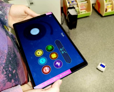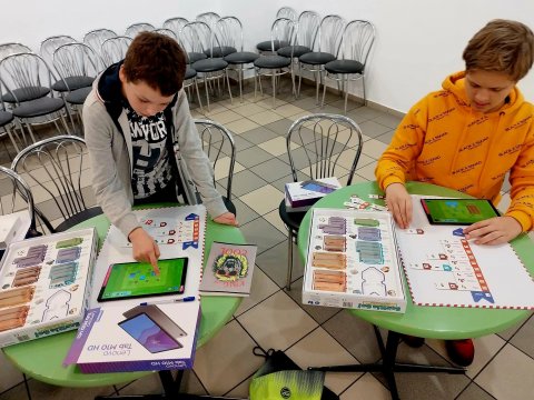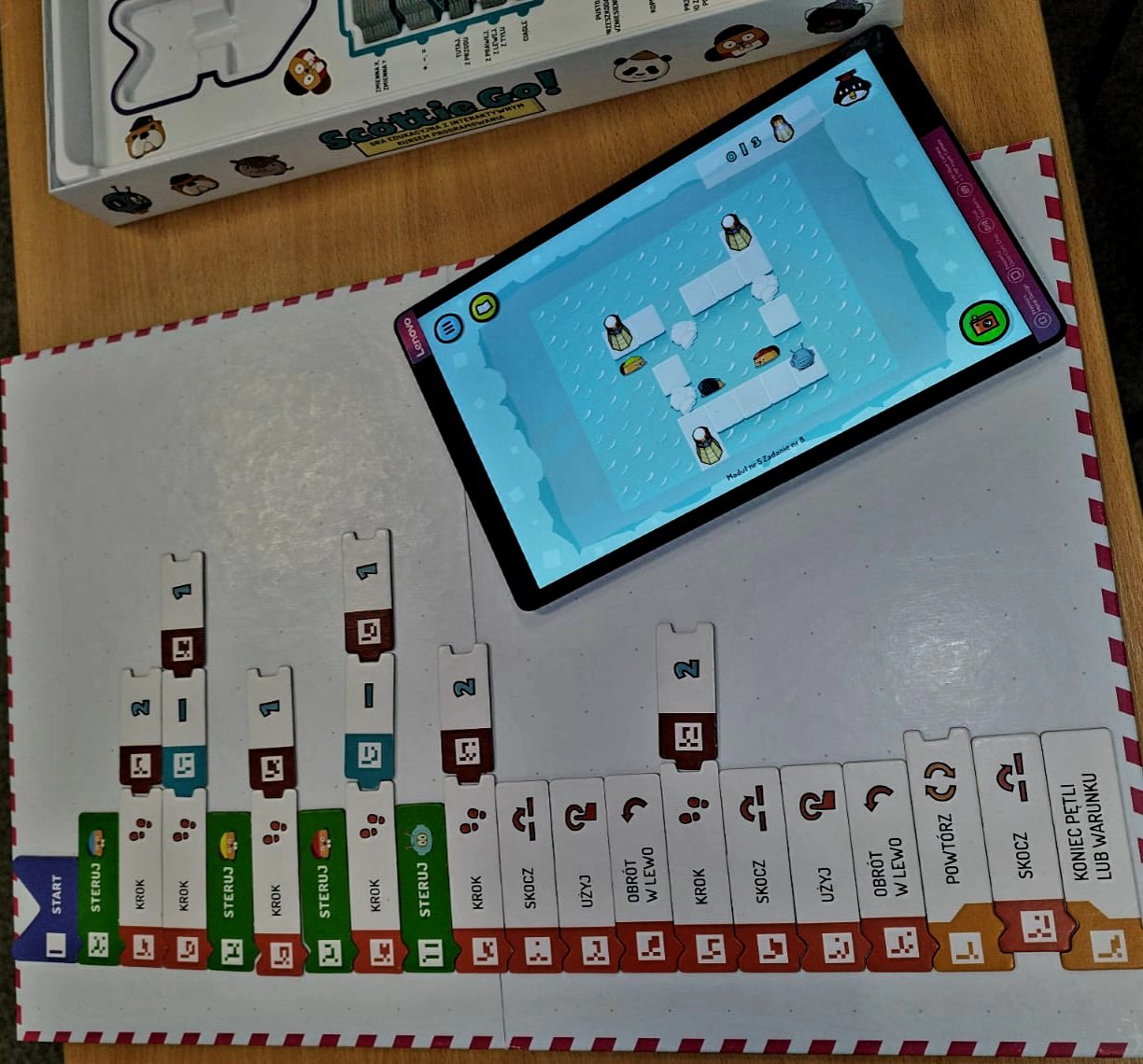 Młodzi programiści mieli okazję zaprogramować robota - bibliotekarkę tak by prawidłowo wykonała slalom wokół krzeseł. Napisali także algorytm mycia zębów, gdzie najtrudniejszym okazało się ustalenie ilości wyciskanej pasty. Po pracy z kartką i długopisem przyszedł czas na programowanie przy pomocy Scootie Go! - fantastycznej aplikacji, której można używać dzięki specjalnym klockom i planszy.