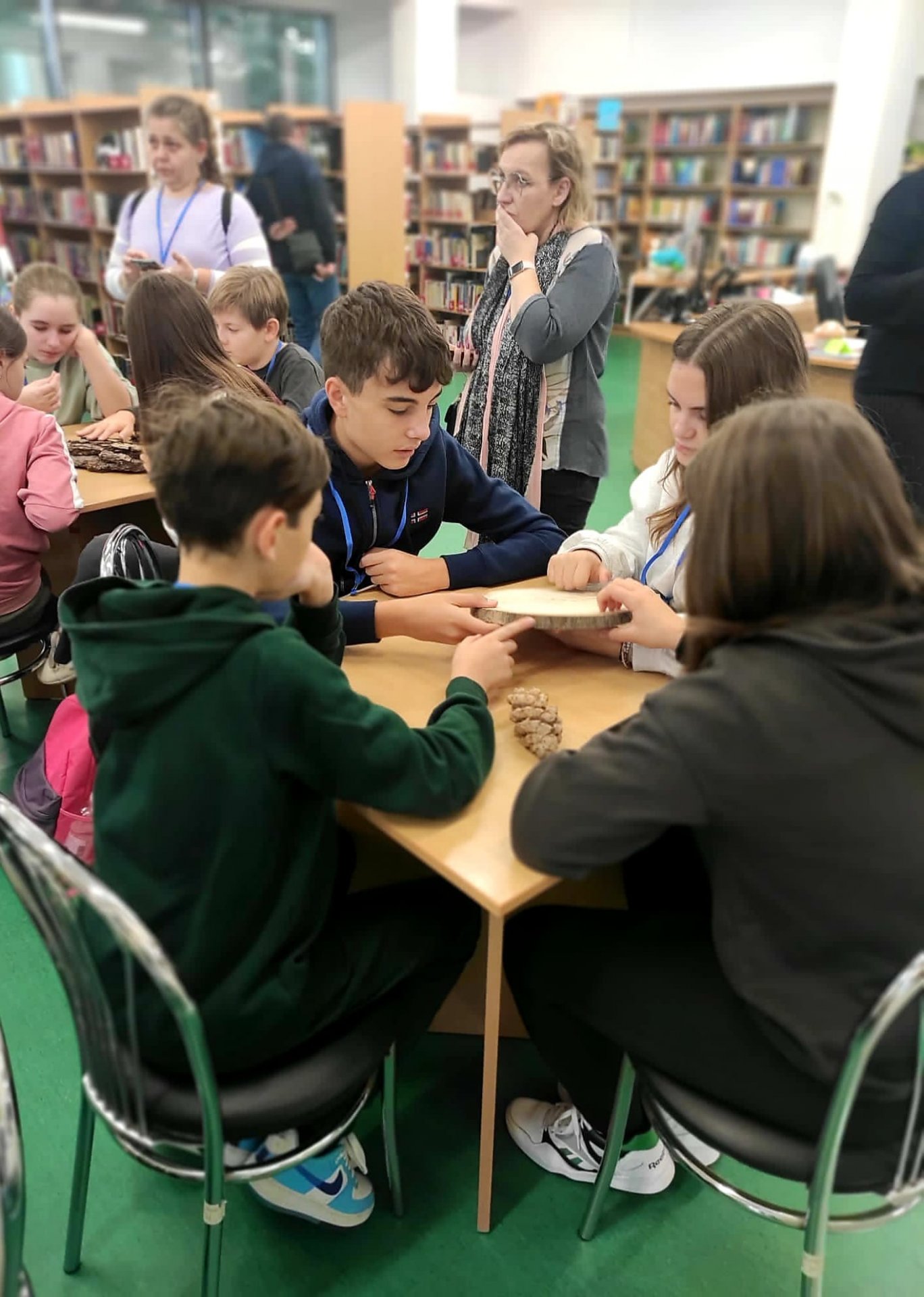 Będzińska biblioteka gościła dziś młodzież z Grecji, Chorwacji, Bułgarii, Rumunii oraz Włoch, która przyjechała do Będzina w ramach projektu Erasmus+ „Handy hands – happy children” realizowanego przez Szkolę Podstawową nr 1w Będzinie.