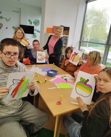 na którego zawsze można liczyć. Uczestnicy spotkania po zapoznaniu się z historią jabłoni Eli wykonali kolorowe i piękne jabłka, którw mieli ofiarować swoim przyjacielom.