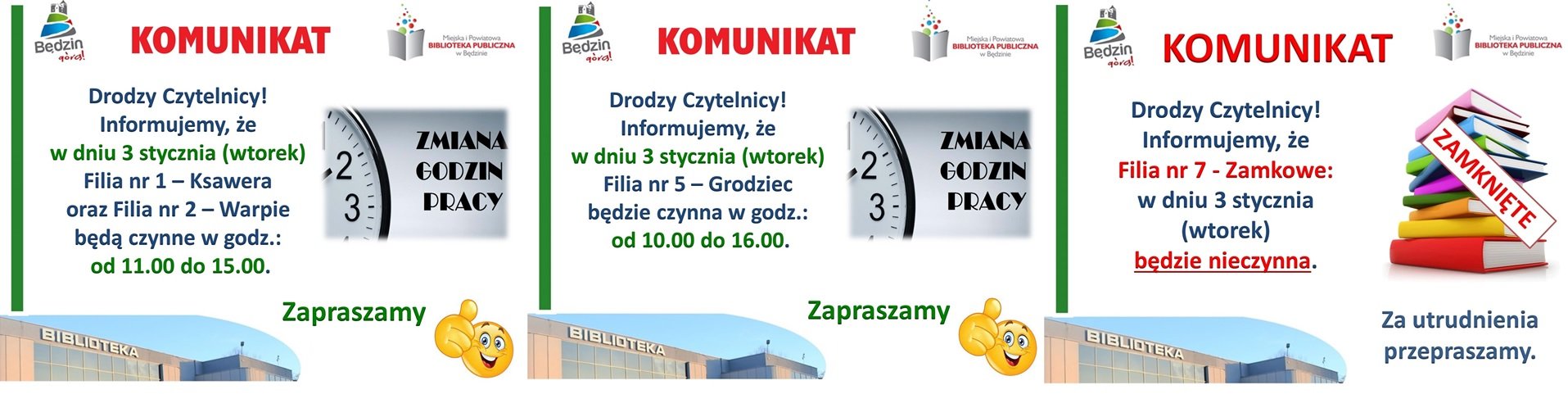 Informujemy, że w dniu 3 stycznia (wtorek) br:
