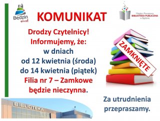 Komunikat dot. zamknięcia Filii nr 7 - Zamkowe w dniach od 12 ...