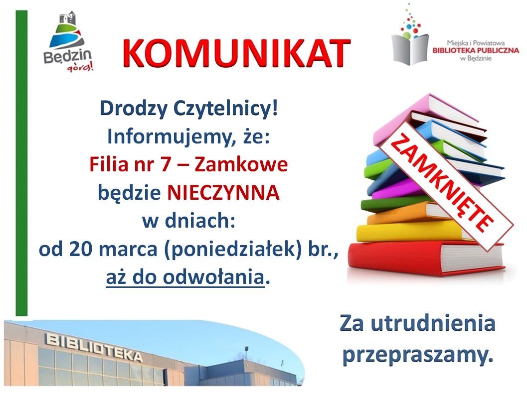Komunikat dot. zamknięcia Filii nr 7 - Zamkowe
