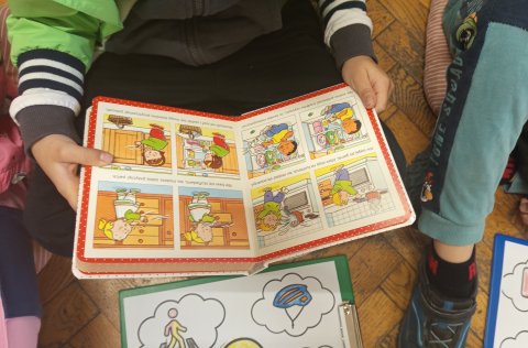 Dzieci wysłuchały utworów z książki Izabeli Jędraszek pt. "Lisek Exlibrisek : dobre wychowanie wierszem : rymowanki", które przedstawiały bardzo cenne rady na co należy uważać i czego się wystrzegać. Dzięki temu dzieci wiedzą, że prąd i gaz mogą być bardzo niebezpieczne, oraz że należy słuchać tego, czego uczy ich mama.
