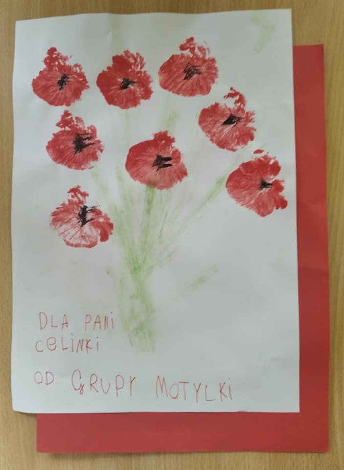 Wykorzystując proste materiały plastyczne - kredki i piórka - dzieci wykonały jeden z polskich narodowych symboli: białego orła w koronie na czerwonej tarczy. Przedszkolaki wiedziały też o zbliżającym się Dniu Bibliotekarza i Bibliotek, który obchodzić będziemy 8 maja. Zaskoczyły miło swoją bibliotekarkę wspaniałą laurką i przemiłymi życzeniami.
