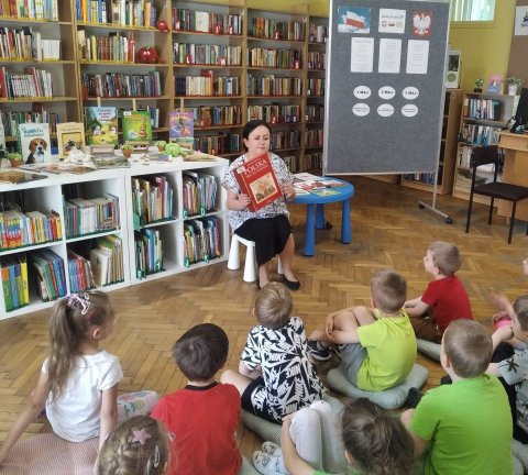 Podczas zajęć zorganizowanych w Filii bibliotecznej nr 5 Grodziec uczniowie klasy I Szkoła Podstawowa nr 6 im. M. Konopnickiej w Będzinie dowiedziały się, jakie mają znaczenie i jak ważną rolę odgrywają symbole narodowe w kształceniu świadomości narodowej.