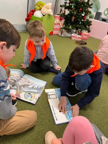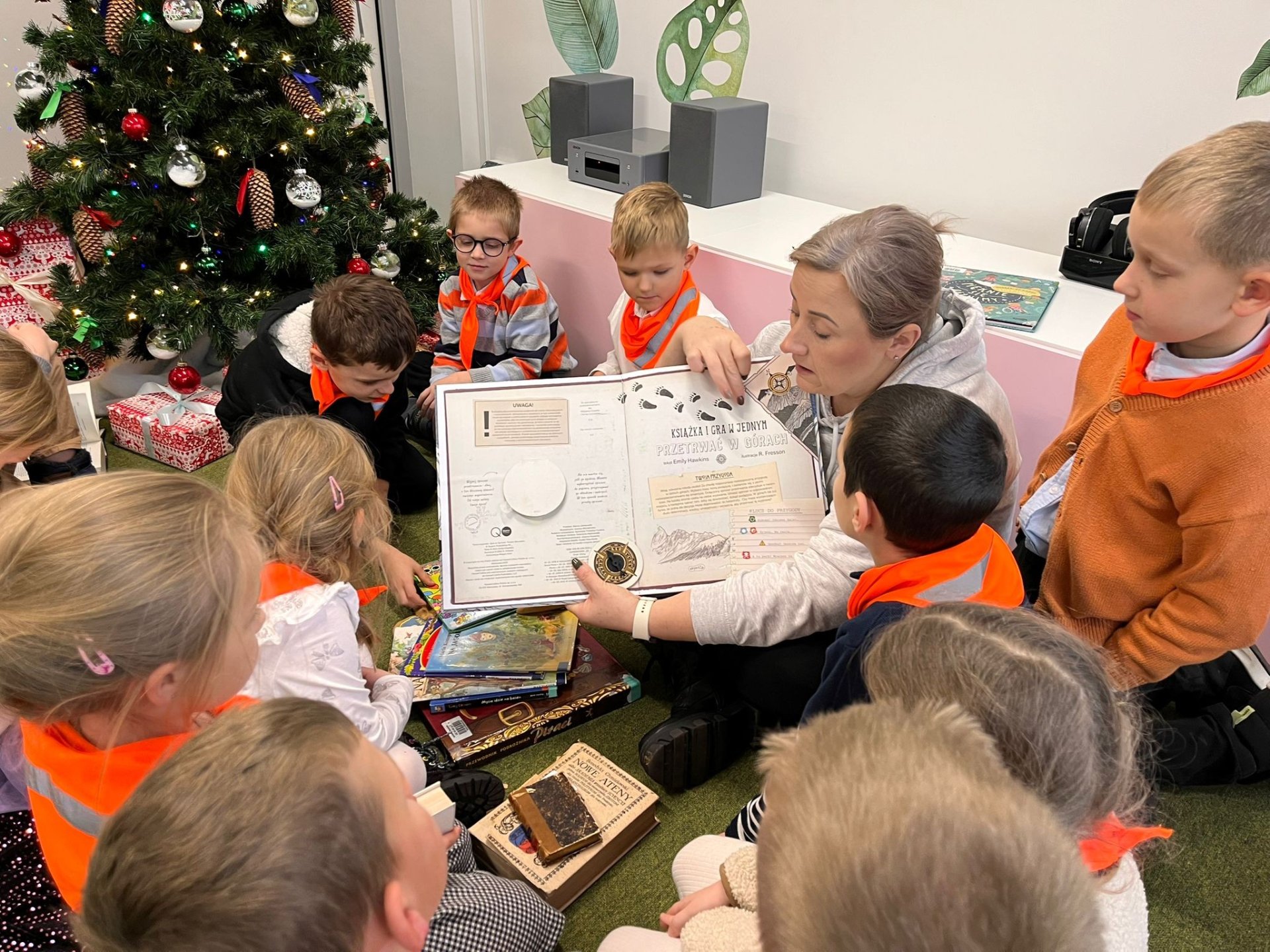 3 grudnia odwiedziła nas wyjątkowa grupa – przedszkolaki z Przedszkola w Nowej Wsi. Podczas zajęć z edukacji czytelniczo-medialnej dzieci wyruszyły w fascynującą podróż po świecie książek – tych dużych i malutkich, tradycyjnych i niezwykłych.