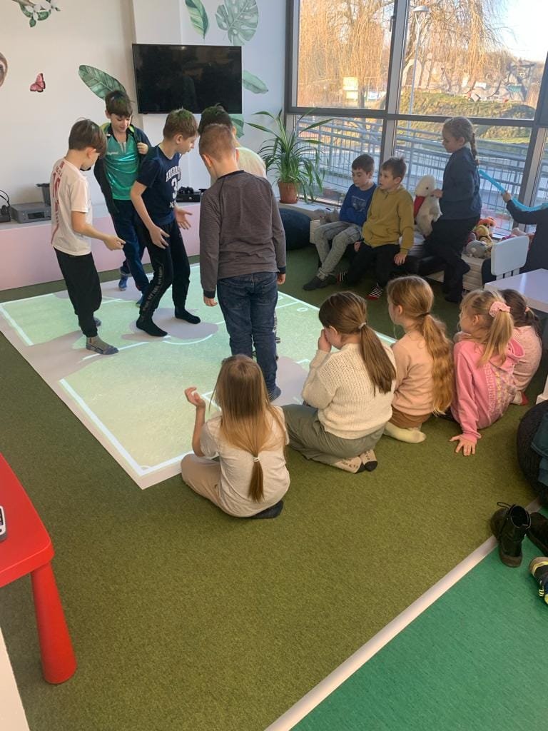 → mini mecze piłki nożnej na macie interaktywnej.