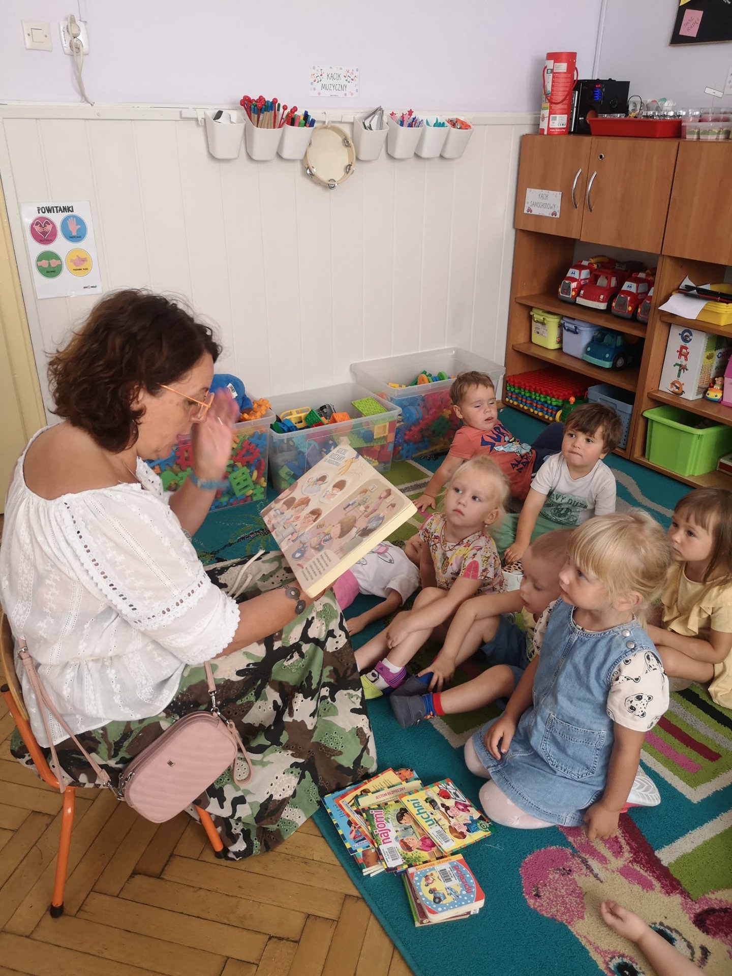 W poniedziałkowy poranek bibliotekarz Filii nr 3 - Dworzec odwiedził Przedszkole Miejskie nr 9 w Będzinie, grupę "Odkrywców" i '' Badaczy ". Dzieci z uwagą wysłuchały bajki pt. "Feluś i Gucio idą do przedszkola" Katarzyny Kozłowskiej. Książka w atrakcyjny i bezpieczny sposób przygotowuje dziecko do rozpoczęcia edukacji przedszkolnej, pomaga zrozumieć nową sytuację i uporać się z lękiem. Ciepłe i pogodne ilustracje pokazują wnętrze przedszkola i wybrane chwile z przebiegu dnia.