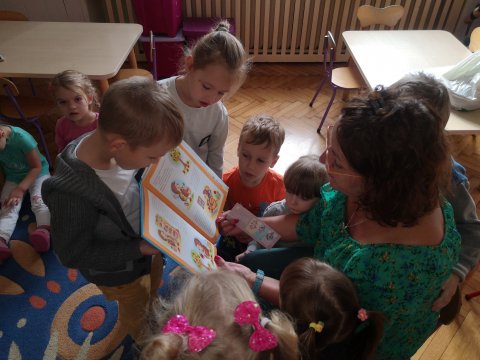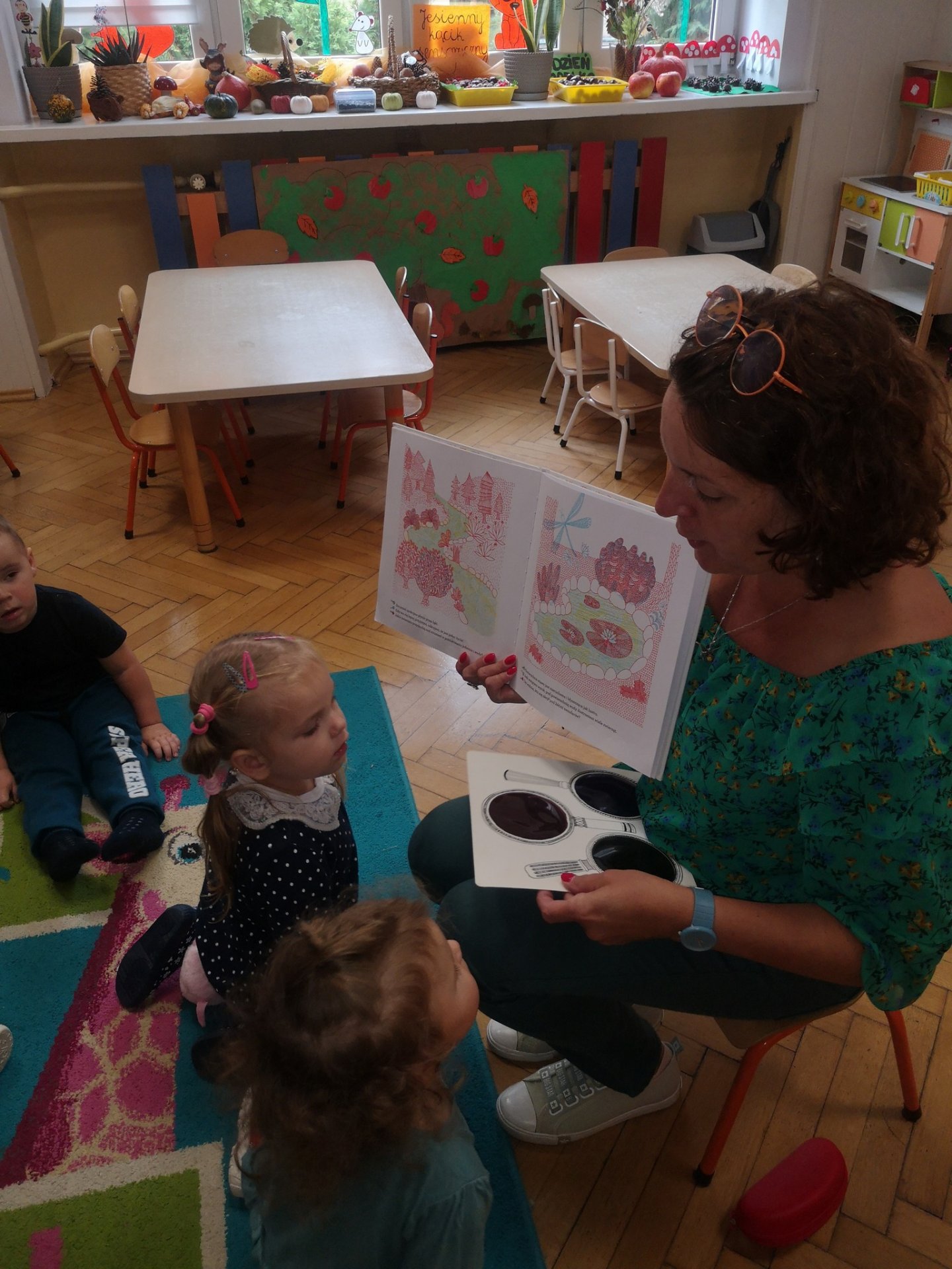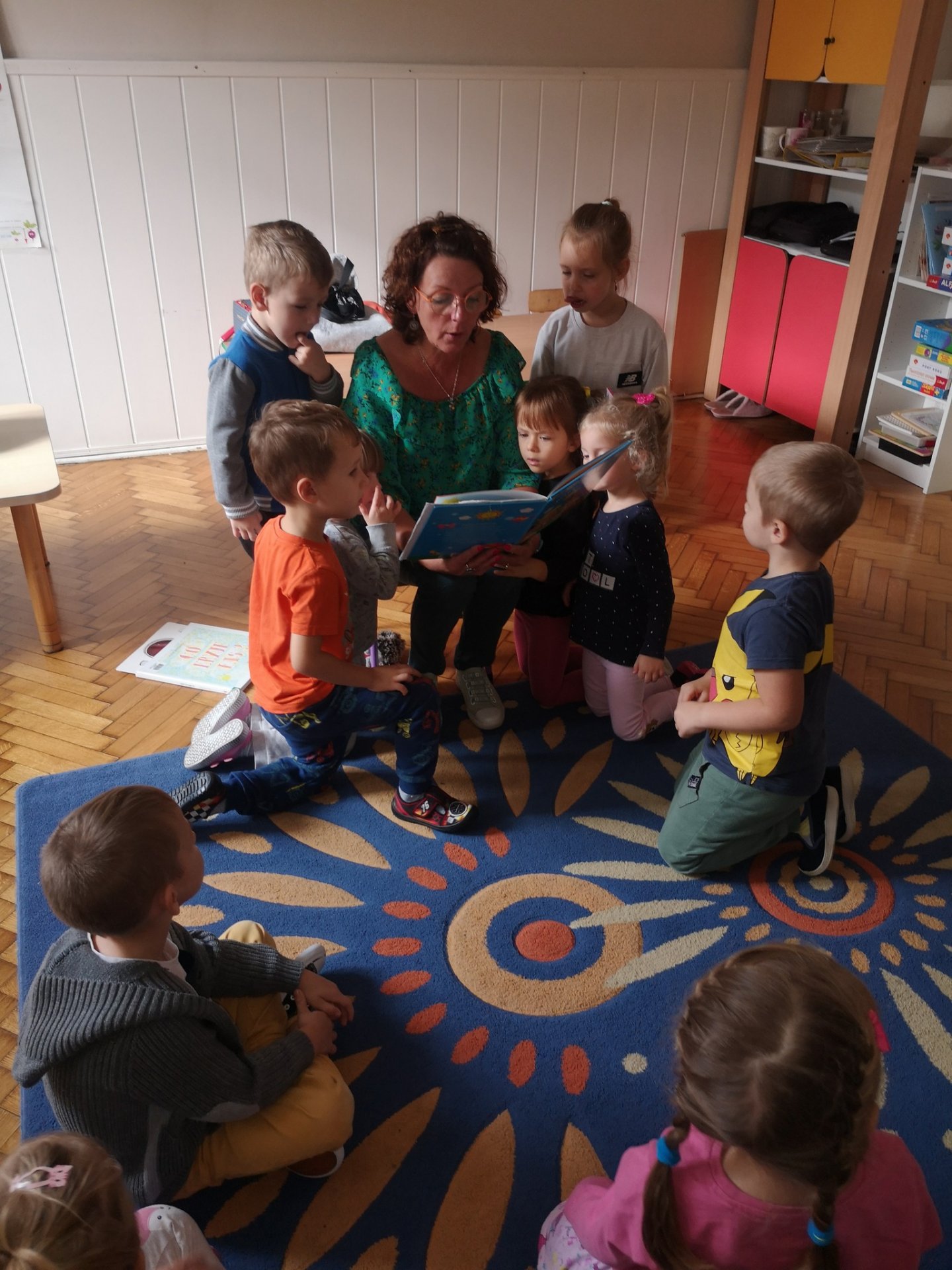 Jesień rozgościła się już na dobre za naszymi oknami. To wyjątkowy czas na spotkania, rozmowy i wspólne zabawy, którym w piątek, trzynastego października poddał się bibliotekarz Filii nr 3 Dworzec Miejskiej i Powiatowej Biblioteki Publicznej w Będzinie wspólnie z dziećmi z Przedszkola Miejskiego nr 9. Po krótkiej dyskusji na temat jesieni dzieci z grupy „Badaczy” i „Odkrywców” wysłuchały opowiadania "Jesień jeżyka" Zofii Poletyło, by potem wykonać jesienne jeżyki z kolorowych liści. Zainteresowanie dzieci wzbudziła również interaktywna książka pt. "Co kryje las" Bestard Ainy. Patrząc przez magiczne kolorowe szkiełka dzieci odkrywały wszystko czego nie widać, tworząc tym samym żywą, barwną opowieść o życiu lasu i jego mieszkańców. Na zakończenie zajęć odbyła się wspólna zabawa ruchowo-sensoryczna - spacer jeży, która sprawiła dzieciom dużo radości.