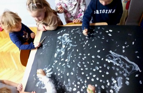 Potem każdy został gwiazdką, która mruga na nas w nocy a na koniec te gwiazdki namalowali.