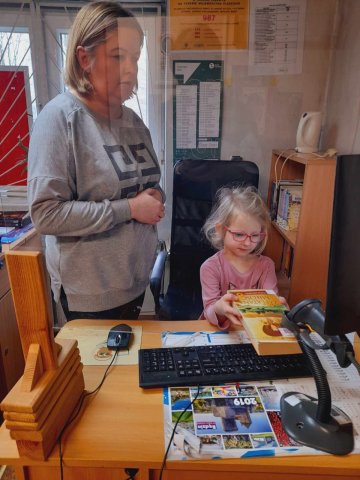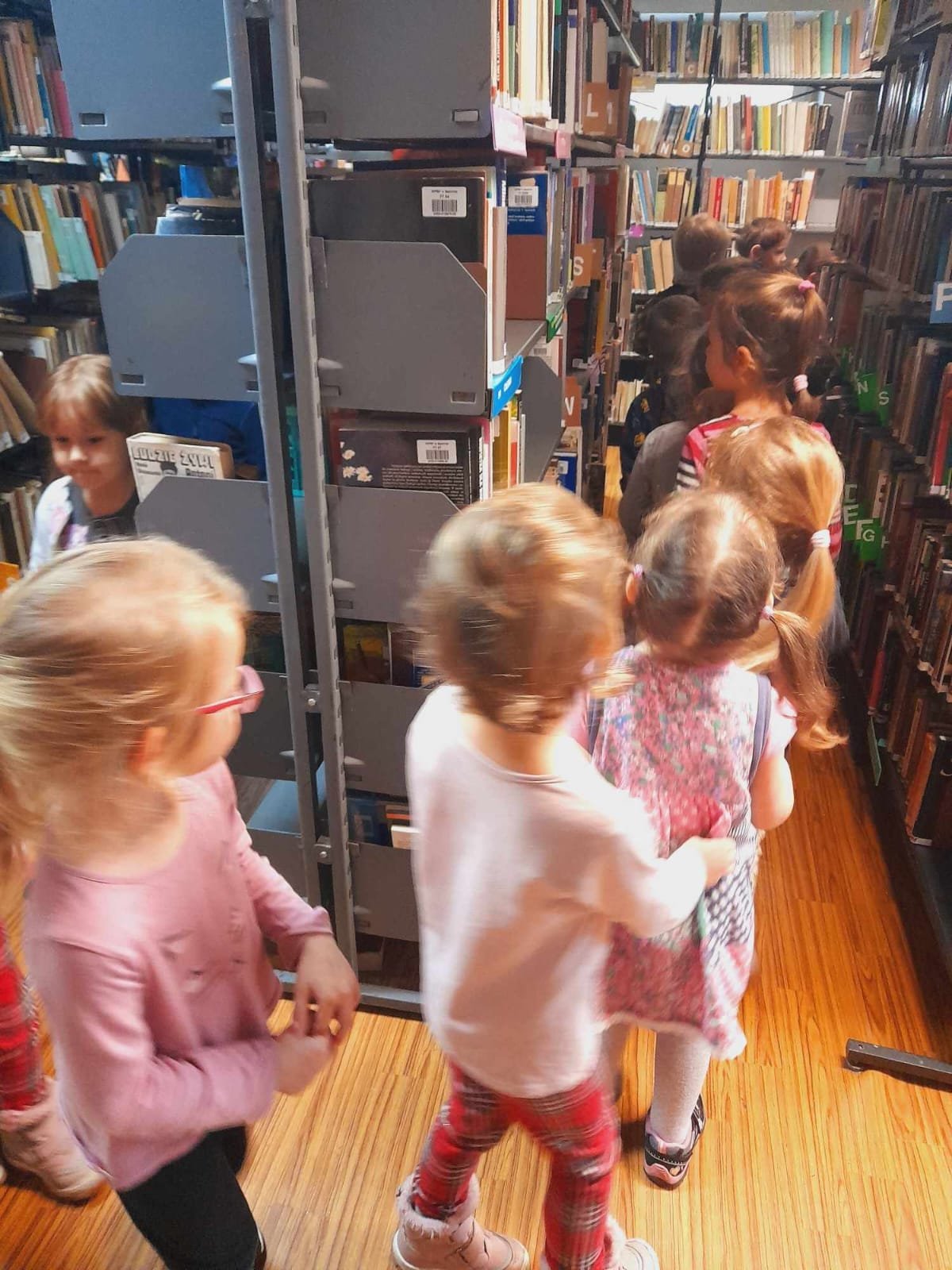 Poznały zasady zapisu do biblioteki i jak wygląda wydawana Czytelnikom karta biblioteczna. Dowiedziały się także o akcji skierowanej do najmłodszych czytelników " Mała książka Wielki Człowiek" obiecując, że przyprowadzą rodziców, aby móc korzystać z biblioteki. Największą frajdą dla Rozśpiewanych Ludków było to, że mogły zobaczyć jak działa system wypożyczeń, dzięki któremu miały okazję z pomocą bibliotekarza zwrócić oraz wypożyczyć książeczki, które wybrały sobie do przedszkola.