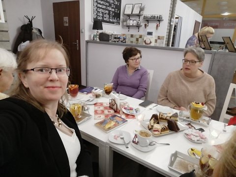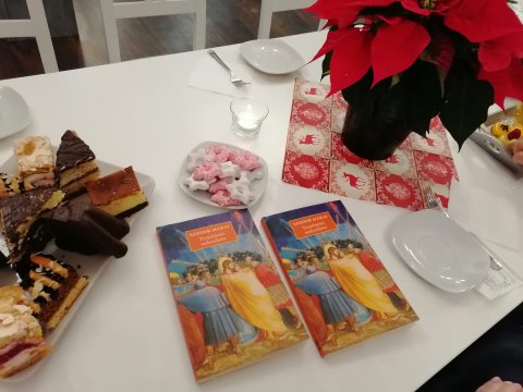 Ostatnie w tym roku spotkanie Dyskusyjnego Klubu Książki odbyło się w dworcowej kawiarni, gdzie czekała na nas słodka niespodzianka przygotowana przez Panią Anię z Cafe No.13. Serdecznie dziękujemy!