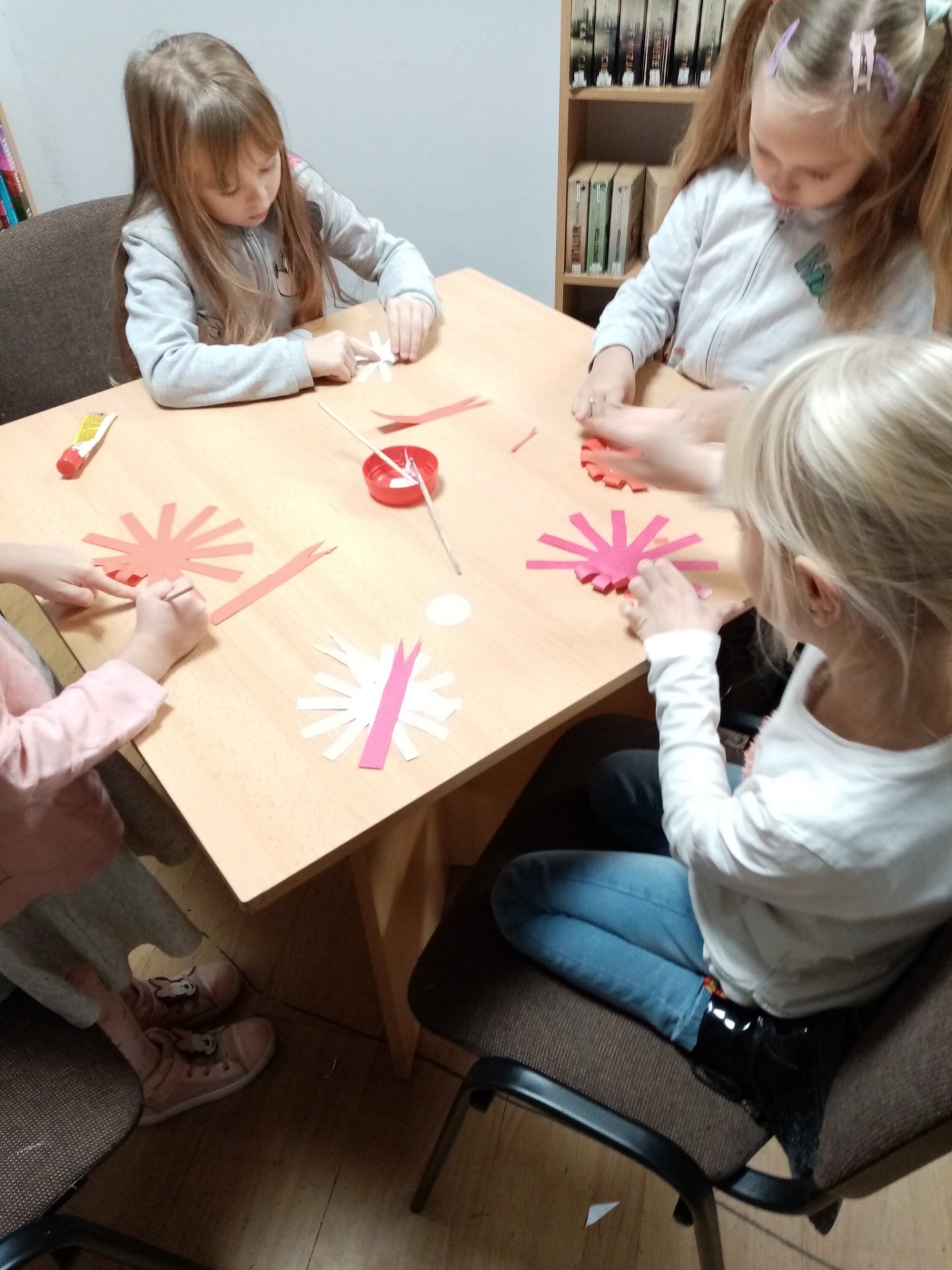 Co wiemy o Polsce? Jak wygląda nasza flaga? Od takich pytań rozpoczęły się pierwsze listopadowe zajęcia organizowane w Filii nr 2 Warpie. Potem przyszedł czas na dzień bajki, które to święto mali czytelnicy starają się świętować cały rok. Ale na ten szczególny dzień dzieci wykonały solne bajkowe księżniczki, bohaterki ich ulubionych bajek. W połowie miesiąca Pani Kredka uznała, że należy sprawdzić,czy jeże i wiewiórki dobrze przygotowały się do zbliżającej się zimy. Warto więc było się wybrać do pobliskiego parku na spacer, by zorientować się czy park jest gotowy na przyjęcie naszych małych przyjaciół. Potem przyszedł pierwszy listopadowy śnieg. I tak zachciało nam się lepić bałwana.