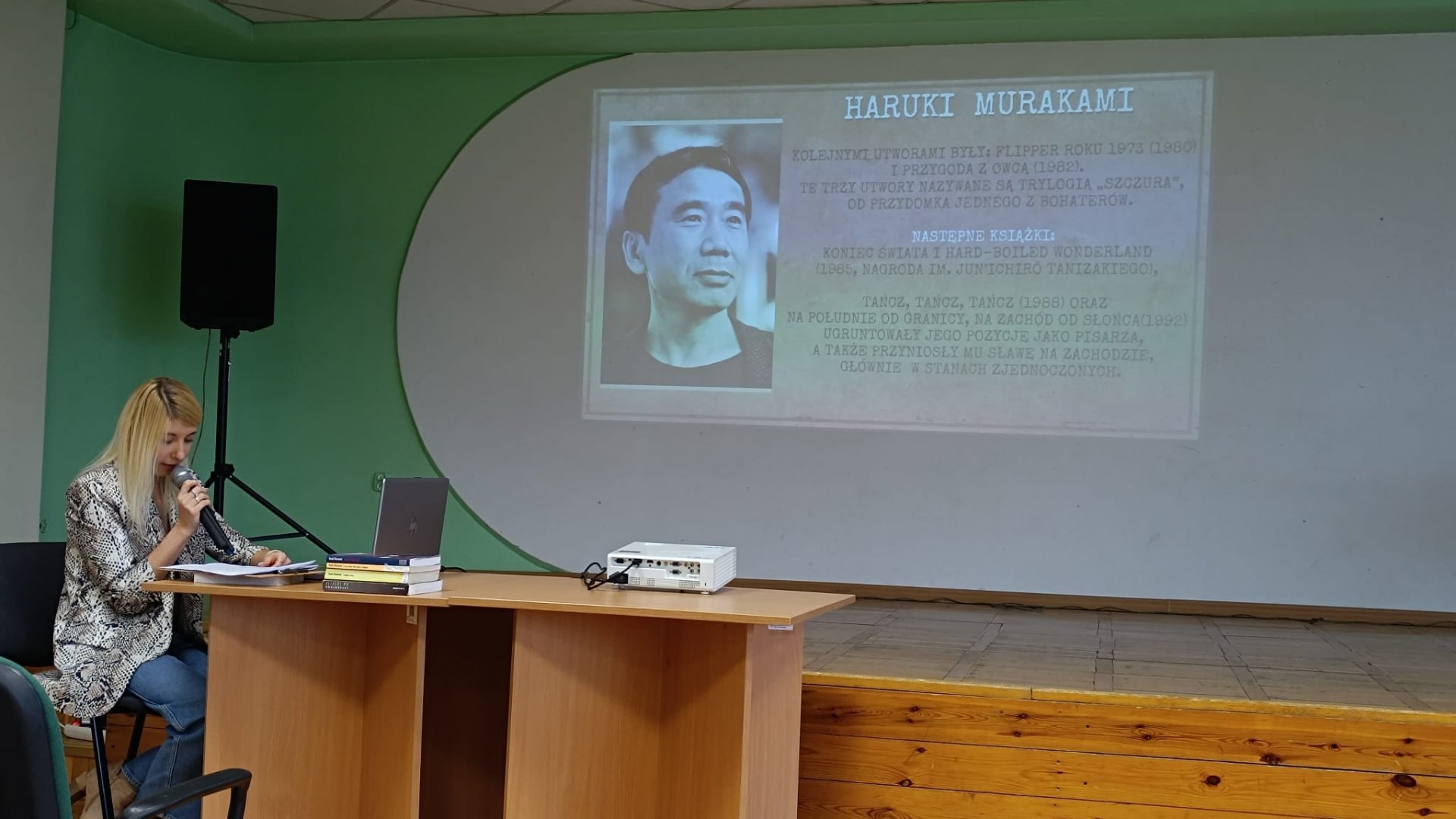 W dalszej części wykładu prowadząca skupiła się na dorobku wydawniczym Murakamiego. Aby przybliżyć jego twórczość odczytane zostały fragmenty z wielu książek autora m.in. „O czym mówię, kiedy mówię o bieganiu”, „Zawód: Powieściopisarz” oraz „Przygoda z owcą”. Murakami w swoim dorobku ma nie tylko powieści ale również reportaże, eseje oraz zbiory opowiadań.