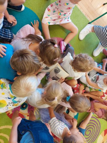 Po wysłuchaniu wiersza dzieci rozmawiały o przygodach małpki, psotach i figlach jakie się jej przytrafiły, a w których ukryte jest przesłanie. Mówi o bezmyślnym naśladowaniu innych i o tym, że może doprowadzić to do niebezpiecznych sytuacji.