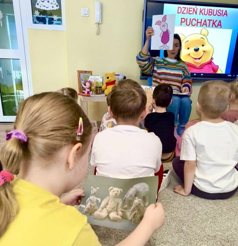 Bibliotekarka Oddziału dla dzieci i młodzieży odwiedziła Przedszkole Miejskie nr 13 im. Juliana Tuwima w Będzinie. W grupie „Tygrysków” królowały „Misie-patysie i inne historie ze Stumilowego Lasu”.