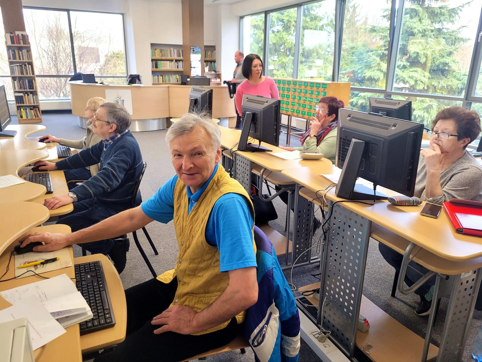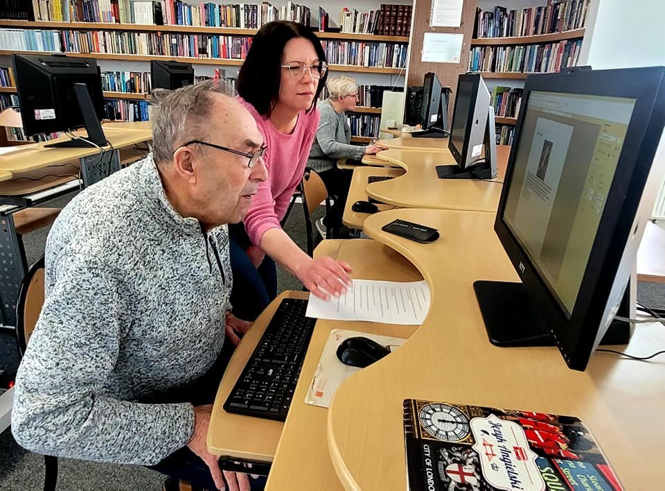 Studenci Będzińskiego Uniwersytetu Trzeciego Wieku uczestnicząc aktywnie w warsztatach komputerowych zdobywają konsekwencje kolejne kompetencje cyfrowe