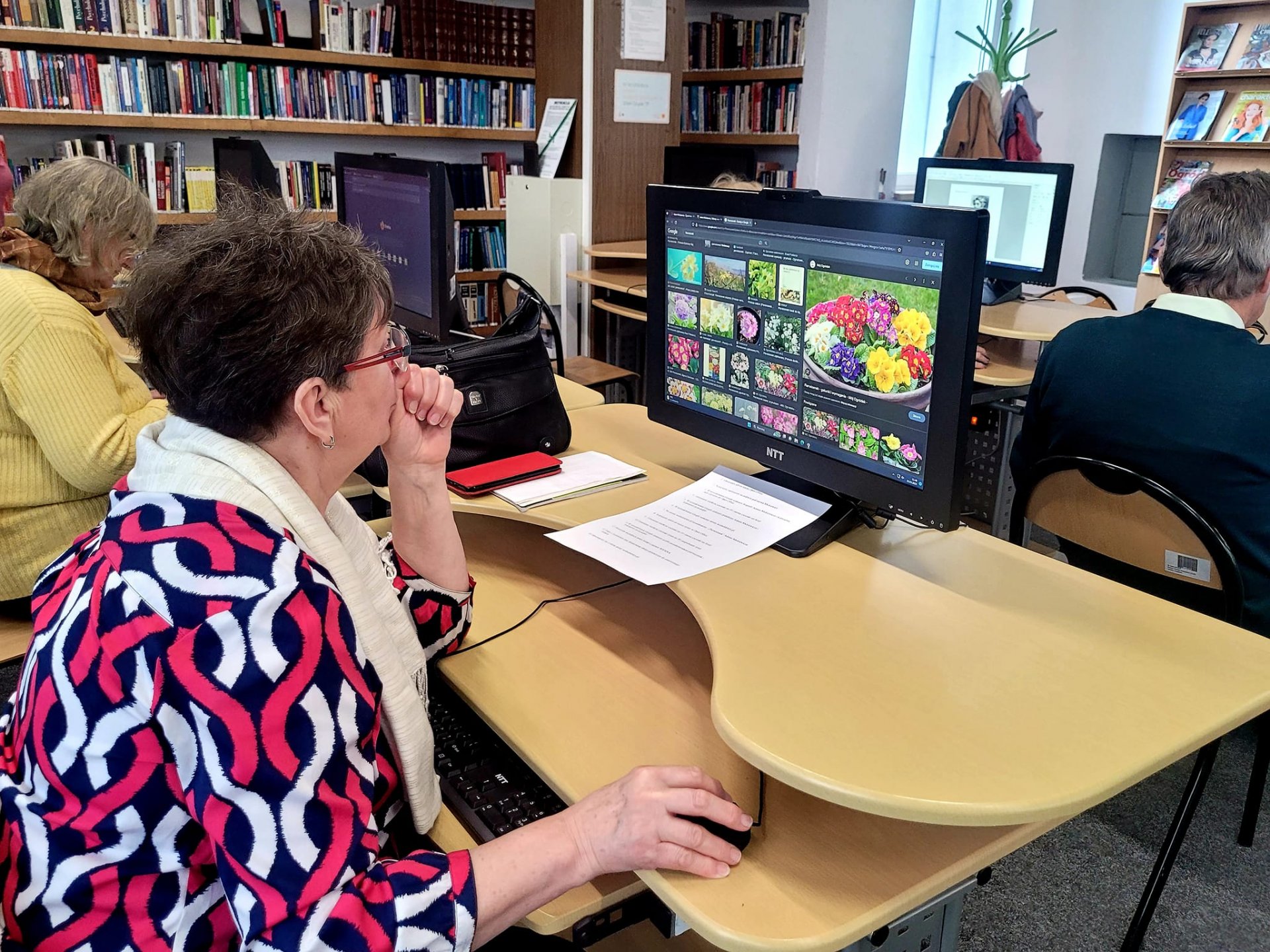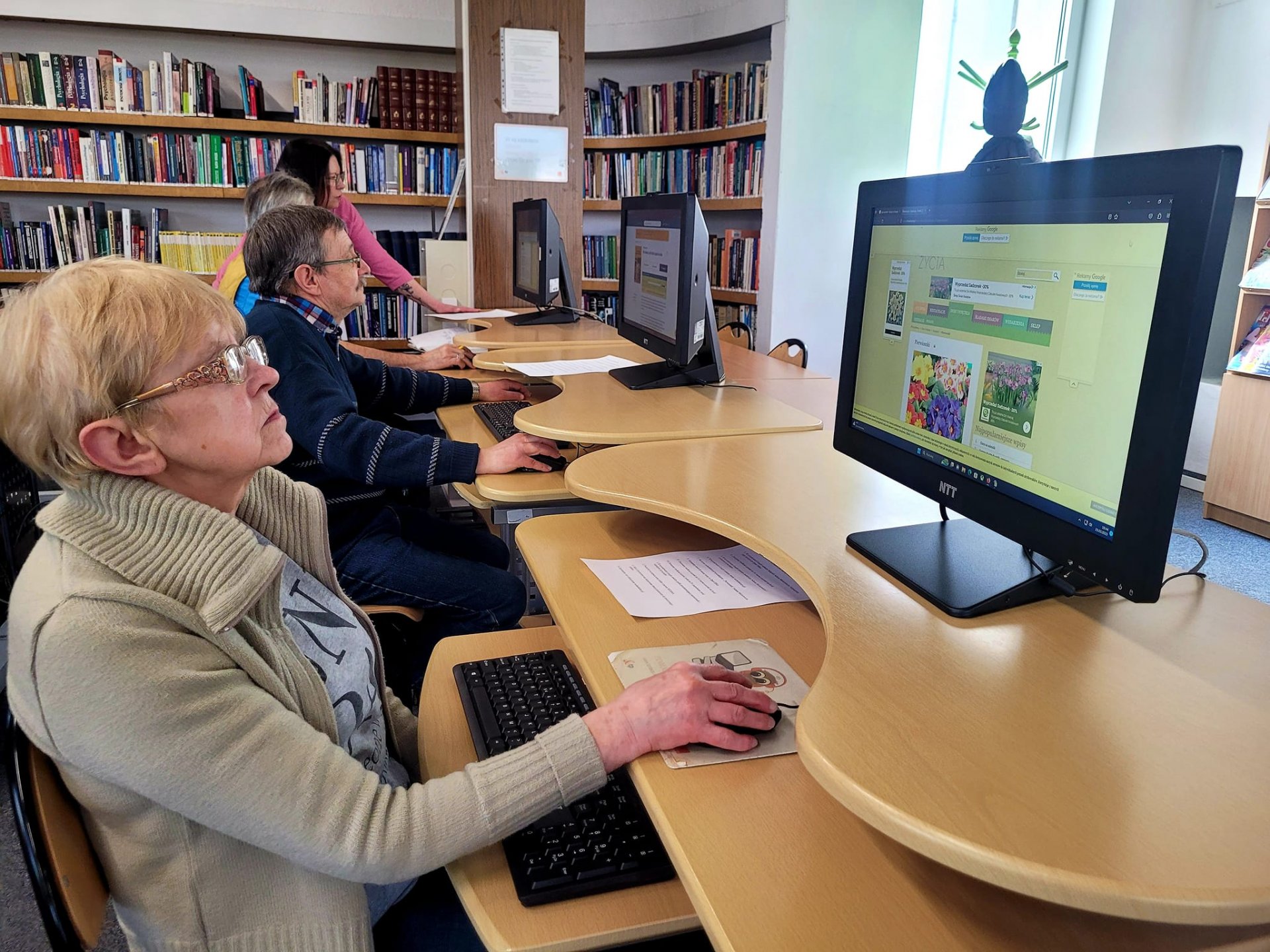 Dziś- 23 marca - ich uwaga skoncentrowana była na wyszukiwaniu wiadomości o Adamie Mickiewiczu, jego wierszu "Pierwiosnek", którego tekst studenci szukali w internetowej bibliotece Wolne Lektury, by potem go skopiować i wkleić do swoich dokumentów tekstowych, na których pracowali. Każde kolejne warsztaty pokazują, jak zdobywane umiejętności oraz korzystanie z zasobów sieci Internet, sprawia Seniorom BUTW wiele satysfakcji i radości. A to z kolei cieszy bibliotekarzy Czytelni Głównej, prowadzących warsztaty. Buszowanie po Internecie daje Seniorom dużo radości i satysfakcji.