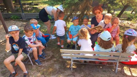 Korzystając z pięknej pogody oraz radosnych zabaw na dworze dzieci z Przedszkole Miejskie nr 11 w Będzinie bibliotekarka Filii 9 - Podłosie postanowiła zachęcić przedszkolaków do czytania i sięgania po książki. Tym razem zaproponowała dzieciom bajki dźwiękonaśladowczo - logopedyczne. Ponadczasowe opowiadania Ewy Szelburg-Zarembiny jak np. "Bajka o gęsim jaju..." , którą czytajac słyszymy wiele trzasków, szelestów i powtórzeń, pozwalają na naukę - i jednocześnie zabawę - trudnych zlepek językowych. Wcale nie tak prosto wypowiedzieć kilkulatkowi słowo szlap, człap, klap, tur. Mimo pojawiających się trudności nikt się nie zrażał i dzielnie ćwiczyliśmy razem. Dzięki temu, że grupa przedszkolaków, jest niewielka nauczycielowi prowadzącemu łatwiej w trakcie zajęć usłyszeć, kto potrzebuje jeszcze ćwiczyć.