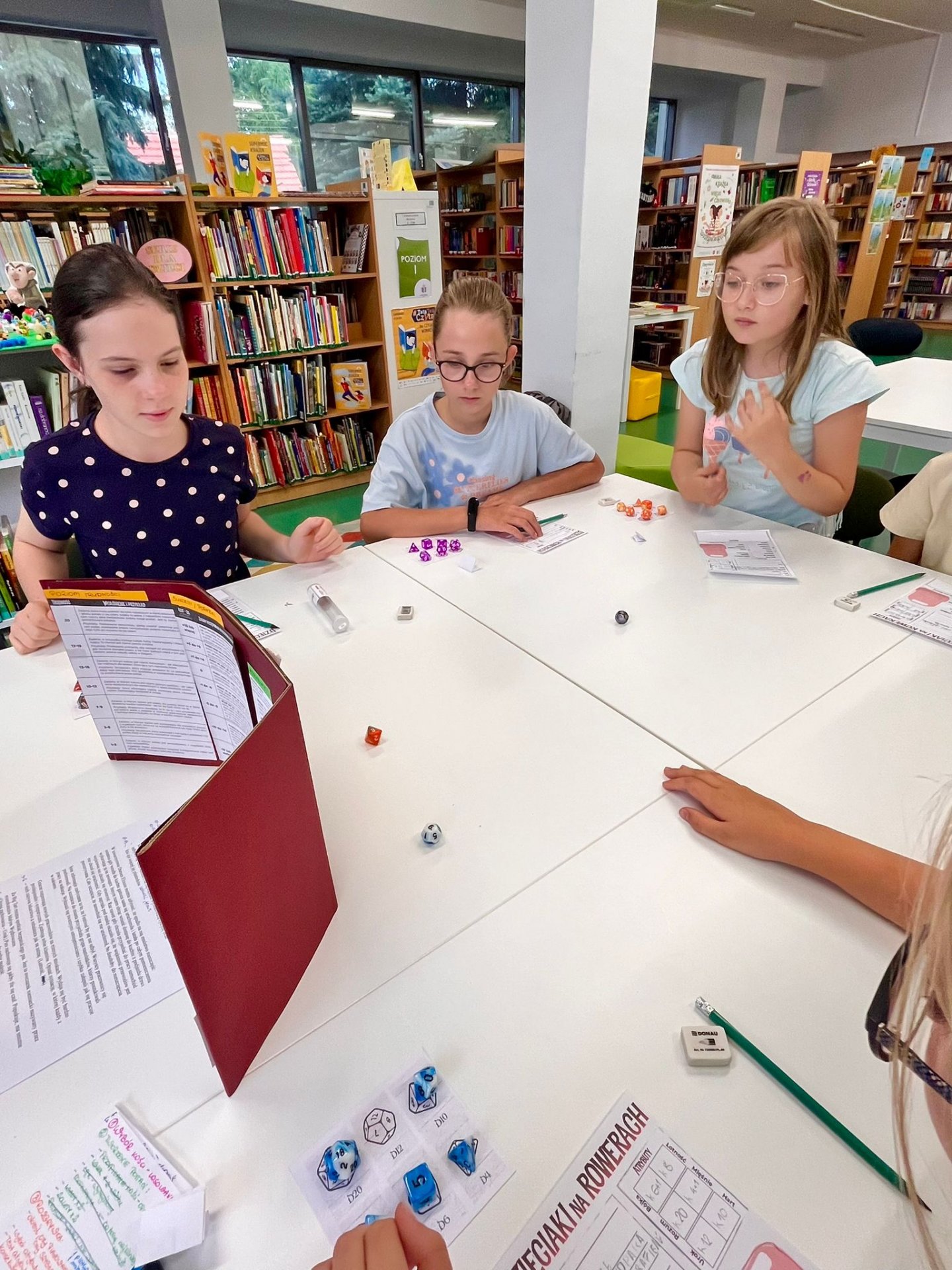 Gdy w małym miasteczku zaczynają dziać się dziwne rzeczy, a grupa nowo przybyłych nastolatków jest bardzo podejrzana, do akcji muszą wkroczyć..."Dzieciaki na rowerach"! Grupa odważnych uczestników zajęć Bbiliowakacji spotkała się w Oddziale dla dzieci i młodzieży, aby rozegrać sesję gry na podstawie scenariusza opracowanego wraz z podręcznikiem "Dzieciaki na rowerach" autorstwa J. Gilmoura oraz D. Levandowskiego. Sesja była bardzo emocjonująca. Gracze mieli ubaw po pachy jednak pojawił się też dreszczyk emocji związany z detektywistyczną zagadką prosto z kosmosu. Dlaczego wyśmienite tarty cytrynowe przestały smakować dzieciom? Skąd u rodziców bełkotanie i otępiałe zachowanie? Kto mógłby wdychać dwutlenek węgla i przeżyć? I dlaczego bezpański pies potrafi teleportować się na zawołanie? Wszystkie odpowiedzi odnalazła grupa bardzo zdolnych uczestników, którzy swoją pomysłowością oraz ogromem wyobraźni wzbogaciła spotkanie o nowe doświadczenia. Już nie możemy doczekać się kolejnego spotkania!