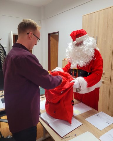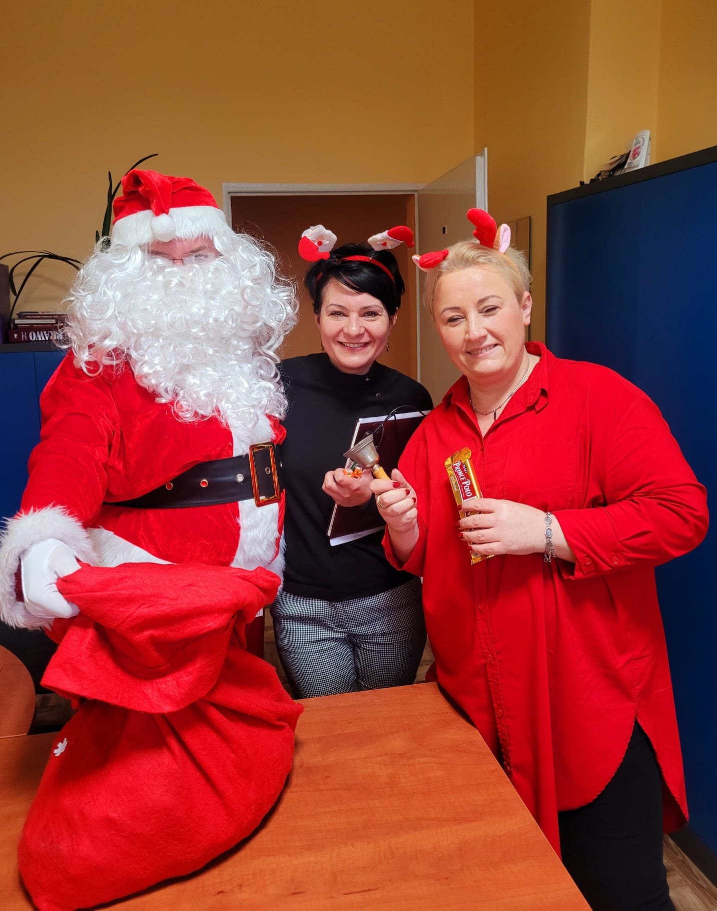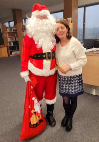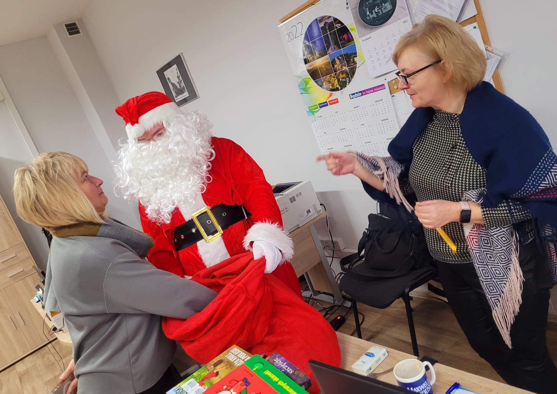 Mikołaj zaskoczył bibliotekarzy i czytelników, wręczając słodkie upominek.