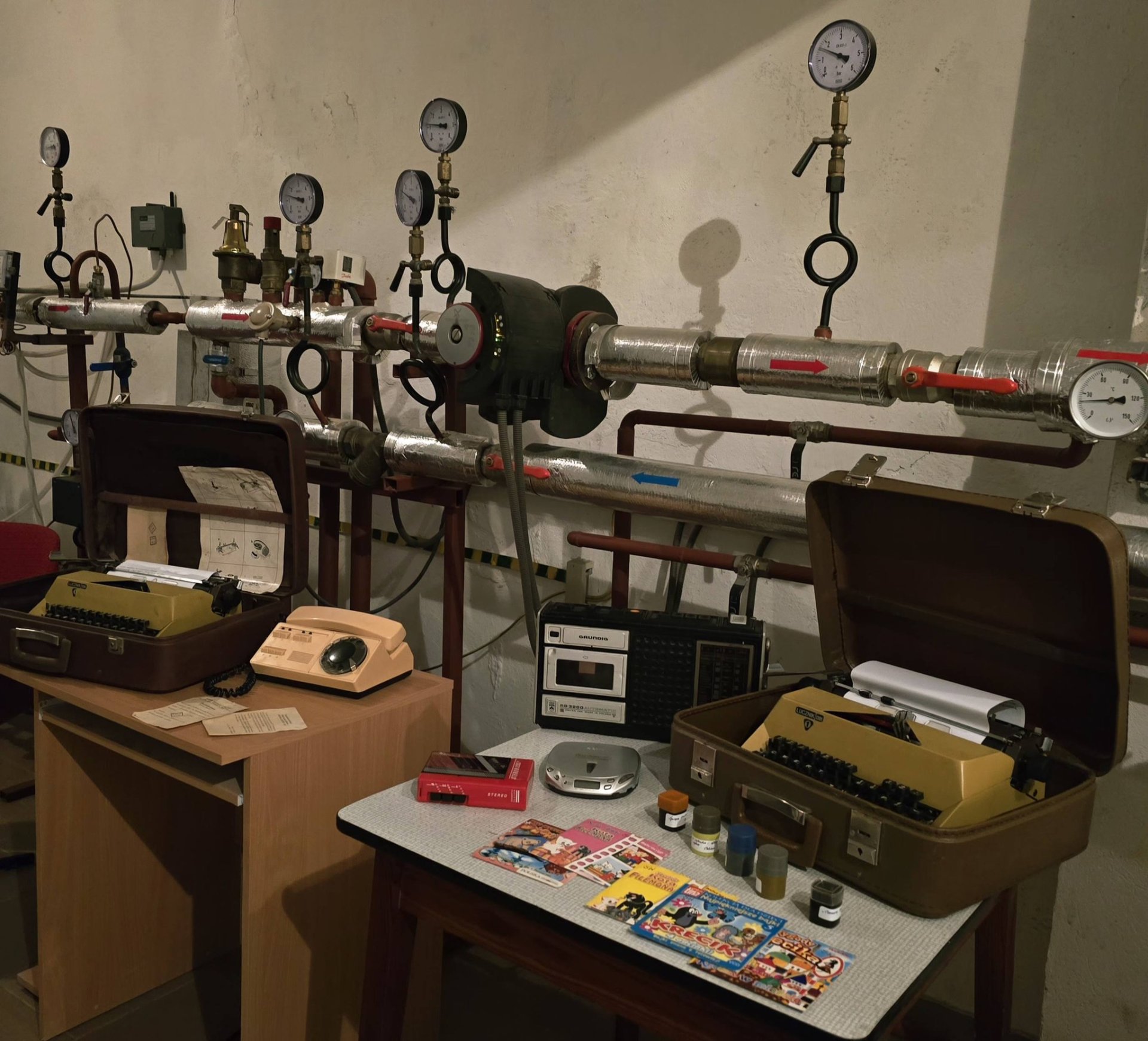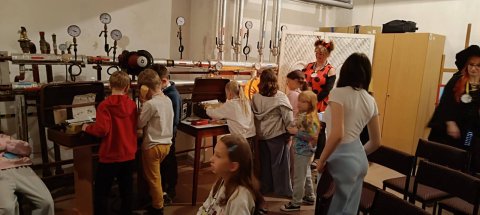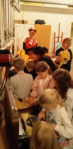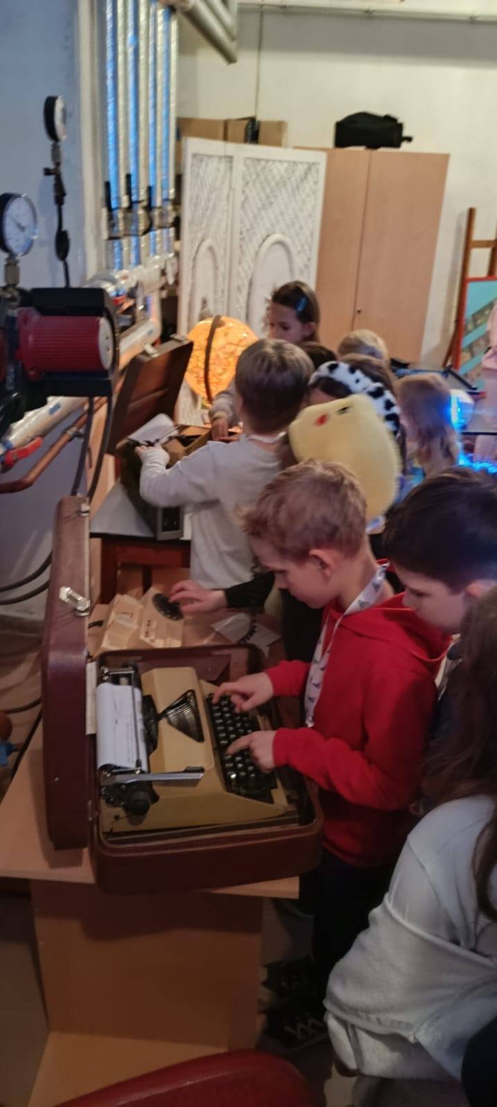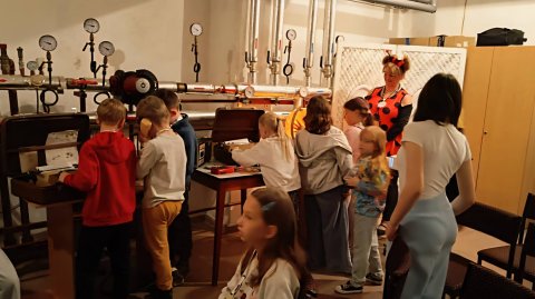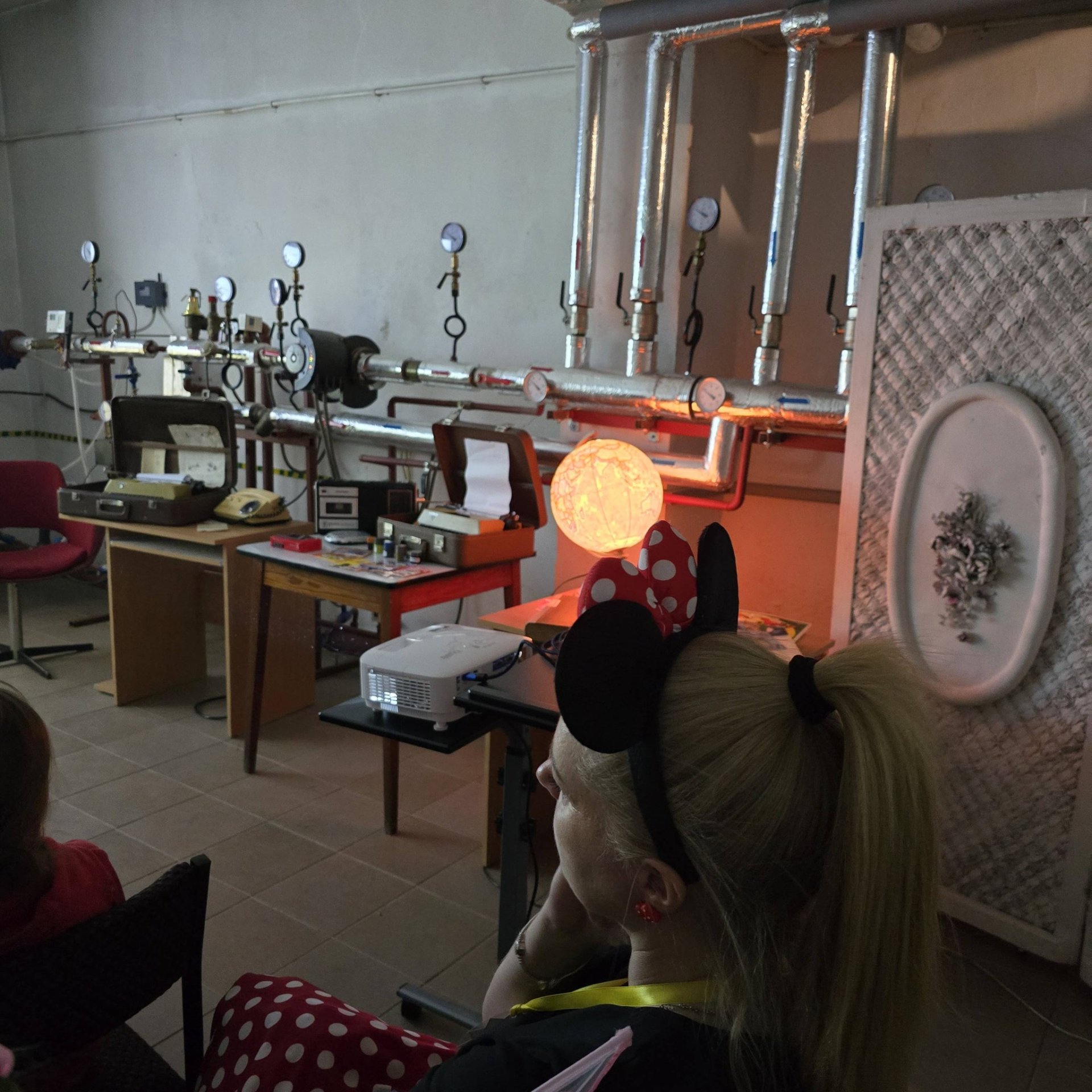 Podczas tegorocznej bajkowej nocy w wymiennikowni CO naszej biblioteki wydarzyła się prawdziwa podróż w czasie… To miejsce zamieniło się w niezwykłą, nieco tajemniczą salę, która przeniosła dzieci do lat 80. Wśród przedmiotów z tamtej epoki można było odkryć świat sprzed smartfonów i internetu – telefon z obrotową tarczą, maszynę do pisania, radio, globus, kasety magnetofonowe i VHS, a także dobrze znany „Świerszczyk”. Surowy, lekko mroczny klimat pomieszczenia, pełnego zegarów, wskaźników i technicznych detali, tylko potęgował wrażenia i pobudzał wyobraźnię. A jednak – choć mogliśmy cofnąć się w czasie i zobaczyć, jak zmienia się świat wokół nas – jedno pozostało niezmienne: baśnie Hansa Christiana Andersena, ich przesłanie, emocje i magia, która od pokoleń porusza serca, niezależnie od epoki. To właśnie one są naszym najpiękniejszym wehikułem czasu – łączą przeszłość z teraźniejszością i pozwalają każdemu odnaleźć w nich coś własnego.