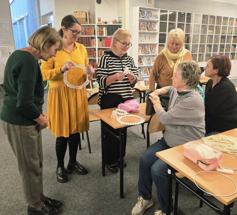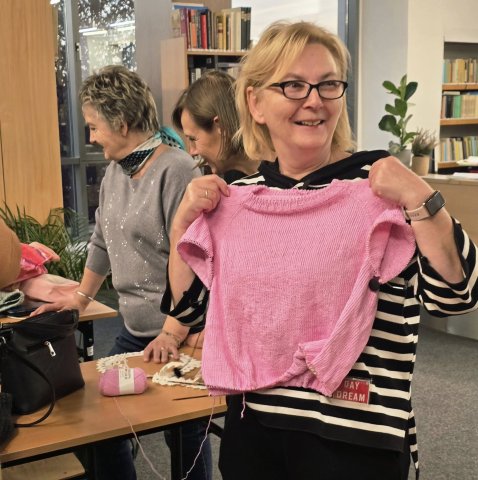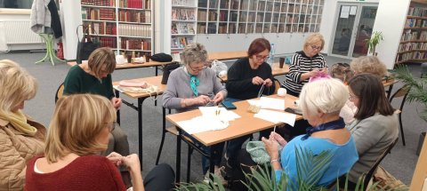 Jaki to był gwarny, radosny i przemiły wieczór. Środowe spotkanie Klubu Szalonych Rękodzielniczek. było prawdziwą ucztą dla duszy i dowodem na to, że nasza biblioteka to coś więcej niż tylko książki. To również świetne, otwarte miejsce –trzecie miejsce. A sądząc po wczorajszej atmosferze, dla naszych rękodzielniczek może to być nawet miejsce numer jeden. Panie czują się u nas dobrze, a w swoim towarzystwie - jeszcze lepiej. Efekt: stół pełen prac, a atmosfera tak przyjacielska, że aż żal się rozstawać....