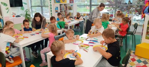 Nasi goście z kolei, Tygryski z przedszkola, wcale się nie bały, że nie potrafią rysować! Z kropkami zrobiły absolutnie wszystko! Kropki skakały, tańczyły, wydawały śmieszne dźwięki i zamieniały się w kolorowe potwory. A potem... potem stworzyły prawdziwe dzieła sztuki.
