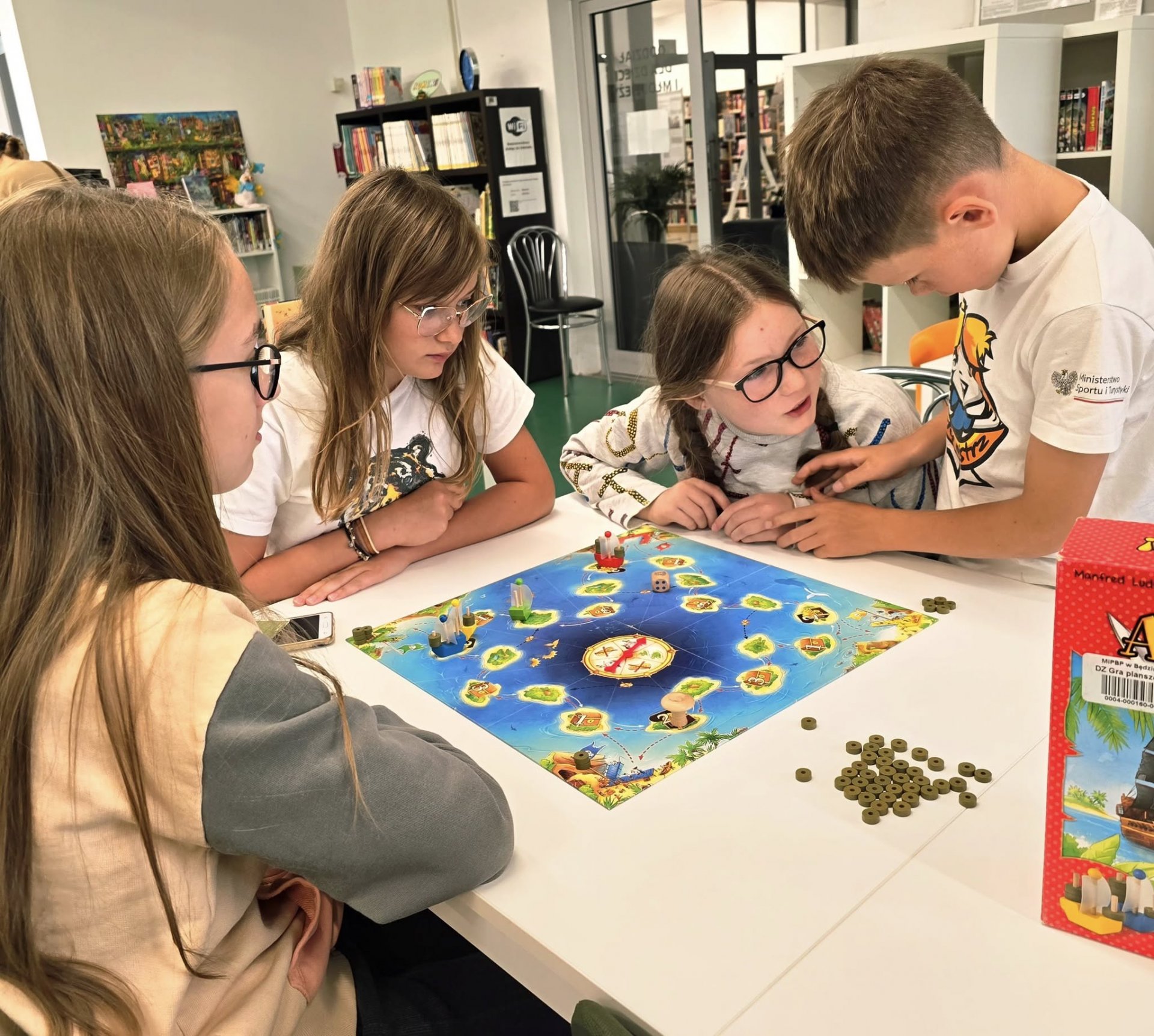 W ramach wakacyjnego maratonu przygód zabraliśmy uczestników spotkania "Gra to fajna zabawa" w pełną przygód podróż po morzach i oceanach, gdzie liczy się spostrzegawczość, refleks i - hm, kto by pomyślał - strategiczne myślenie. w trakcie podróży przez wody morza karaibskiego nastąpiła inwazja groźnych piratów, którzy po odnalezieniu ukrytych skarbów musieli sprawnie je załadować na pokład i bezpiecznie przetransportować do portu.