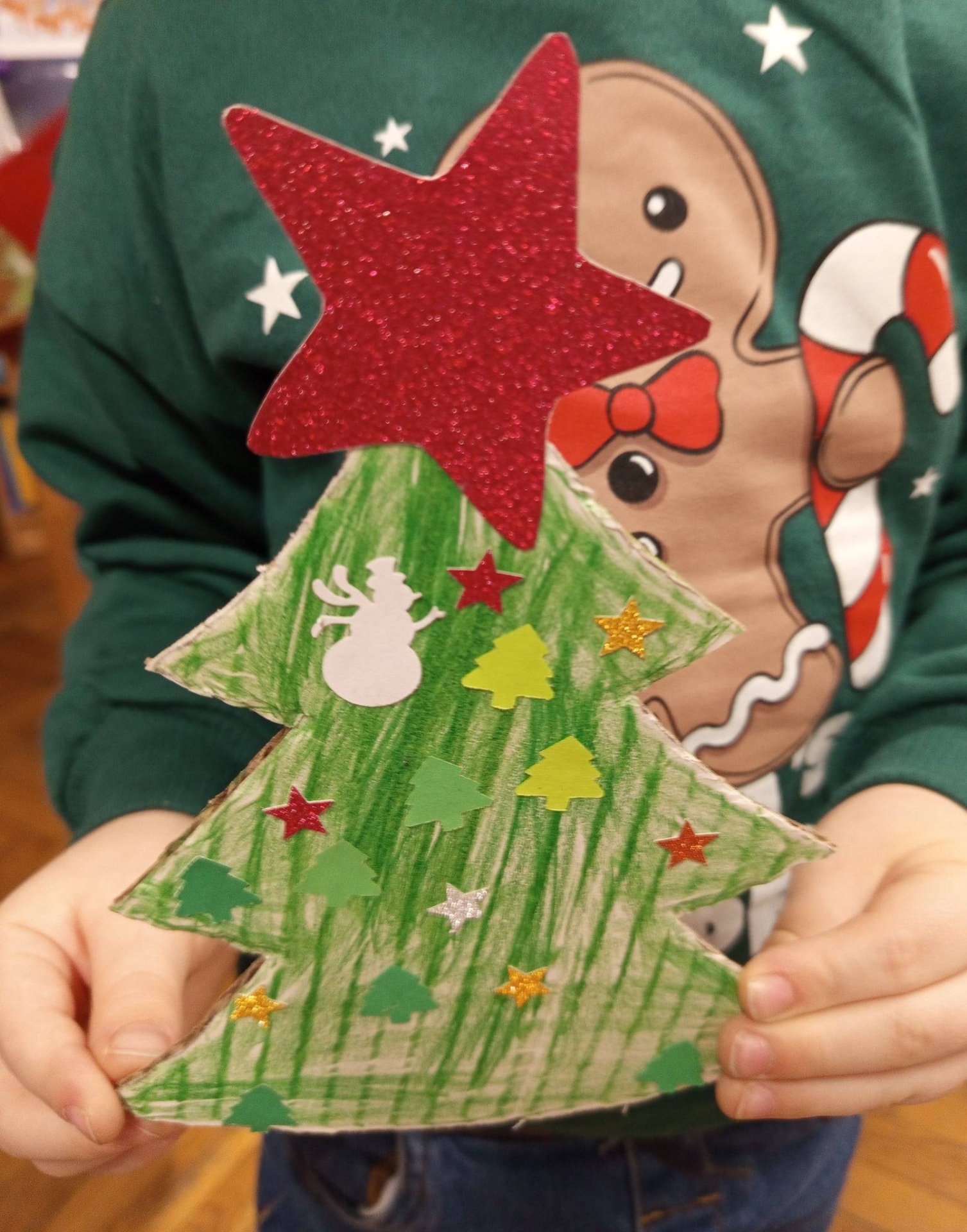 Rozmowy o tradycyjnych potrawach, pierwszej gwiazdce i strojeniu choinki były niezwykle inspirujace. Na koniec spotkania przedszkolaki własnoręcznie przygotowały świąteczne ozdoby.