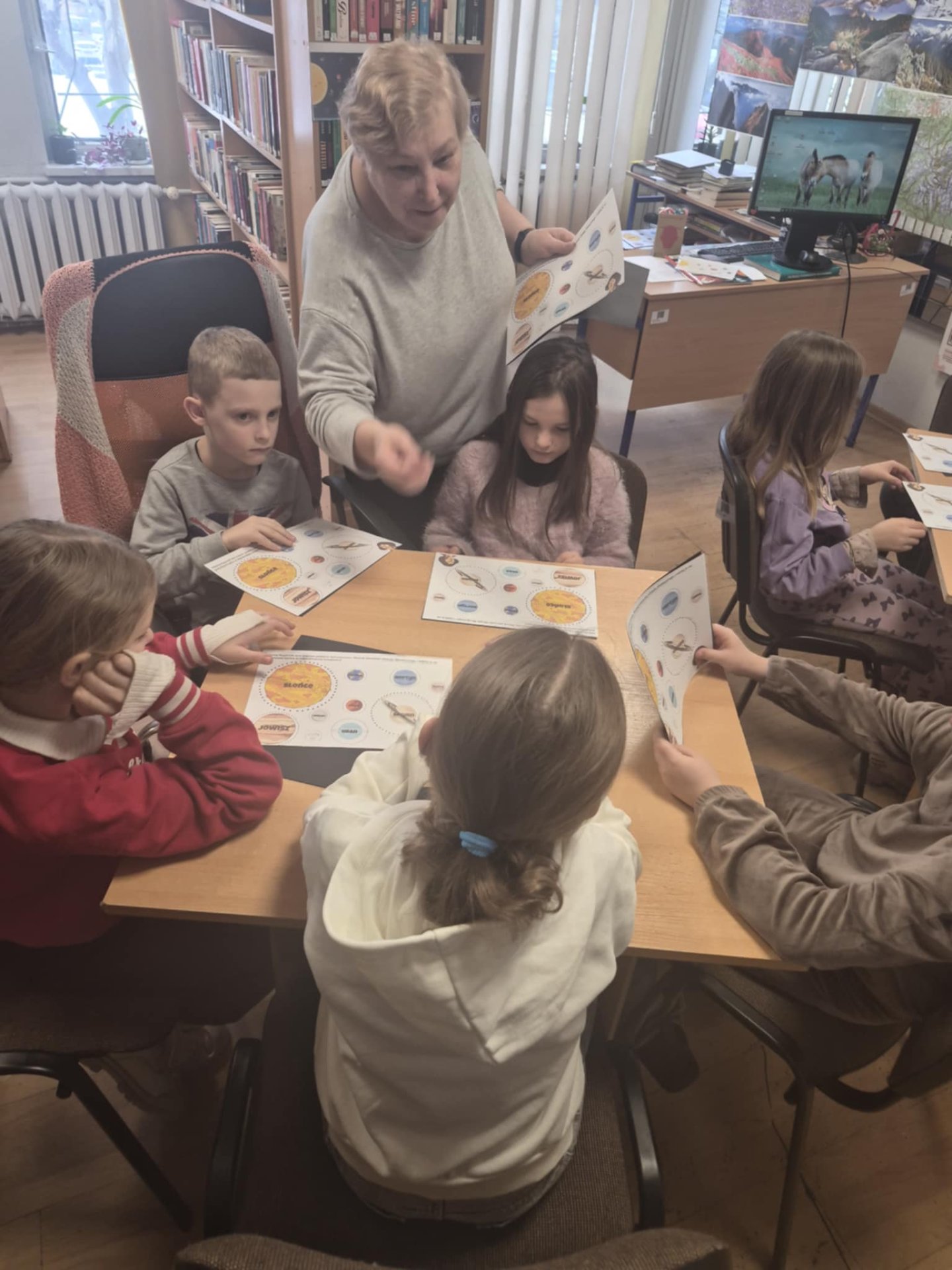 Naszą Filię nr 2 Warpie odwiedziła grupa dzieci z Miejskiej Świetlicy Środowiskowej. Razem wyruszyliśmy w podróż po Układzie Słonecznym, odkrywając tajemnice planet i gwiazd.