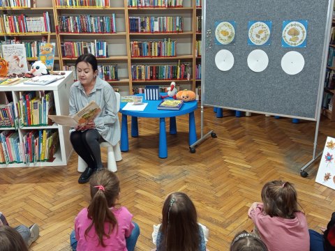 29 września obchodziliśmy Ogólnopolski Dzień Głośnego Czytania. Z tej okazji grupa Motylków z Przedszkola Miejskiego nr 6 w Będzinie odwiedziła Filię nr 1 - Ksawera. Ponieważ data święta związana jest z dniem urodzin wspaniałej polskiej autorki książek dla dzieci Janiny Porazińskiej, spotkanie rozpoczęliśmy właśnie od jej utworu. Z książki pt. "Psotki i śmieszki" wybraliśmy wiersz "Na grzyby!", który pięknie opisuje jesienne przysmaki. Pozostając w klimacie rozpoczętej niedawno pory roku przedstawiony został rymowany tekst "Bajki o jesiennym szalu" autorstwa Elżbiety Ostrowskiej. Książka jest bardzo ciekawie skonstruowana, bowiem mali słuchacze ćwiczą w jej trakcie umiejętność liczenia.