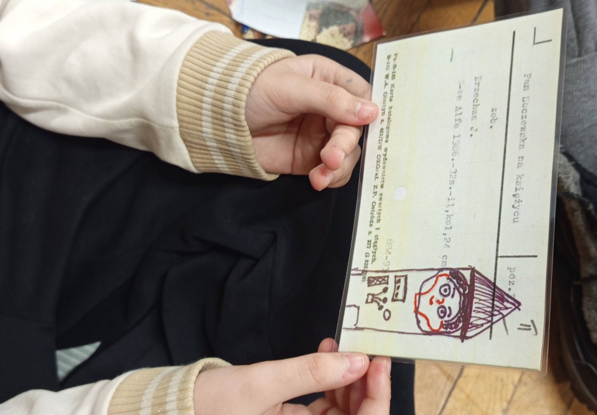 Przeglądając kroniki wypełnione archiwalnymi fotografiami oraz jubileuszowe publikacje pod redakcją Janusza Karkoszki, młodzież odkrywała dawne oblicze „Klubu pod Sową”, różne wersje bibliotecznych exlibrisów oraz pamiątki po dawnych przedstawieniach teatralnych i konkursach. Wielkie zaciekawienie wzbudziły tradycyjne karty katalogowe i dawny, ręczny system wypożyczeń, który zestawiliśmy z dzisiejszymi udogodnieniami. Uczniowie przekonali się, jak bardzo zmieniła się praca bibliotekarza i nasza oferta – od nowoczesnego systemu komputerowego, przez bogatą kolekcję gier planszowych, aż po dostępny całą dobę książkomat.