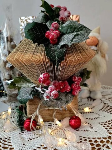 Nie przyszli z pustymi rękami. Otrzymaliśmy przepiękne, oryginalne stroiki wykonane z... zaczytanych książek. To niezwykłe, jak literatura, która towarzyszyła im podczas pracy, zmieniła się w małe dzieła sztuki.