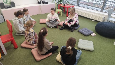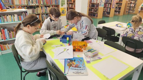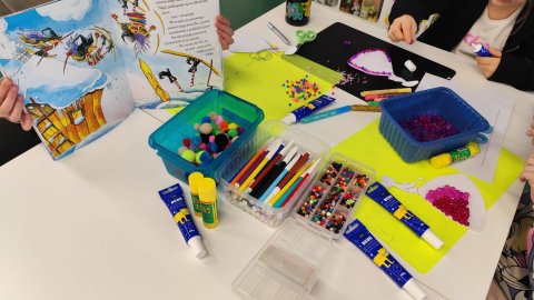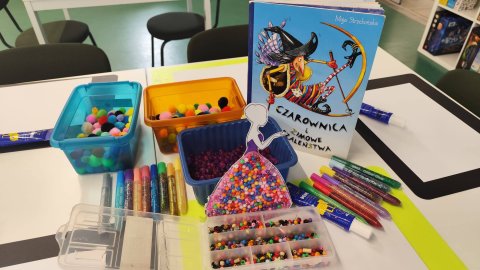 Zanim jednak chwyciliśmy za koraliki, przenieśliśmy się w świat fantazji dzięki książce „Czarownica i zimowe szaleństwa” Mai Strzebońskiej. Poznaliśmy historię nietypowej czarownicy, która zamiast grzać się przy piecu, woli: