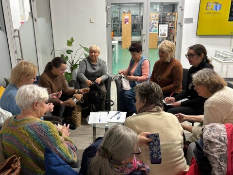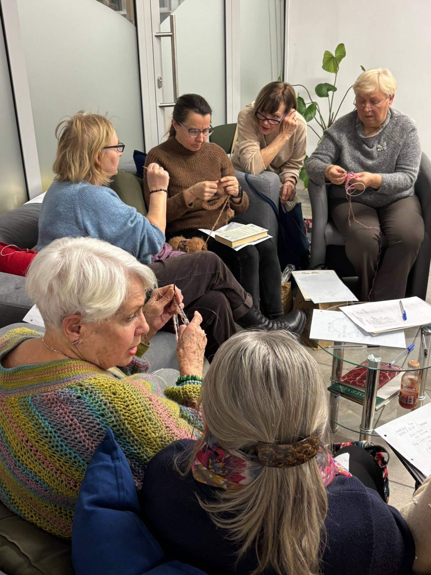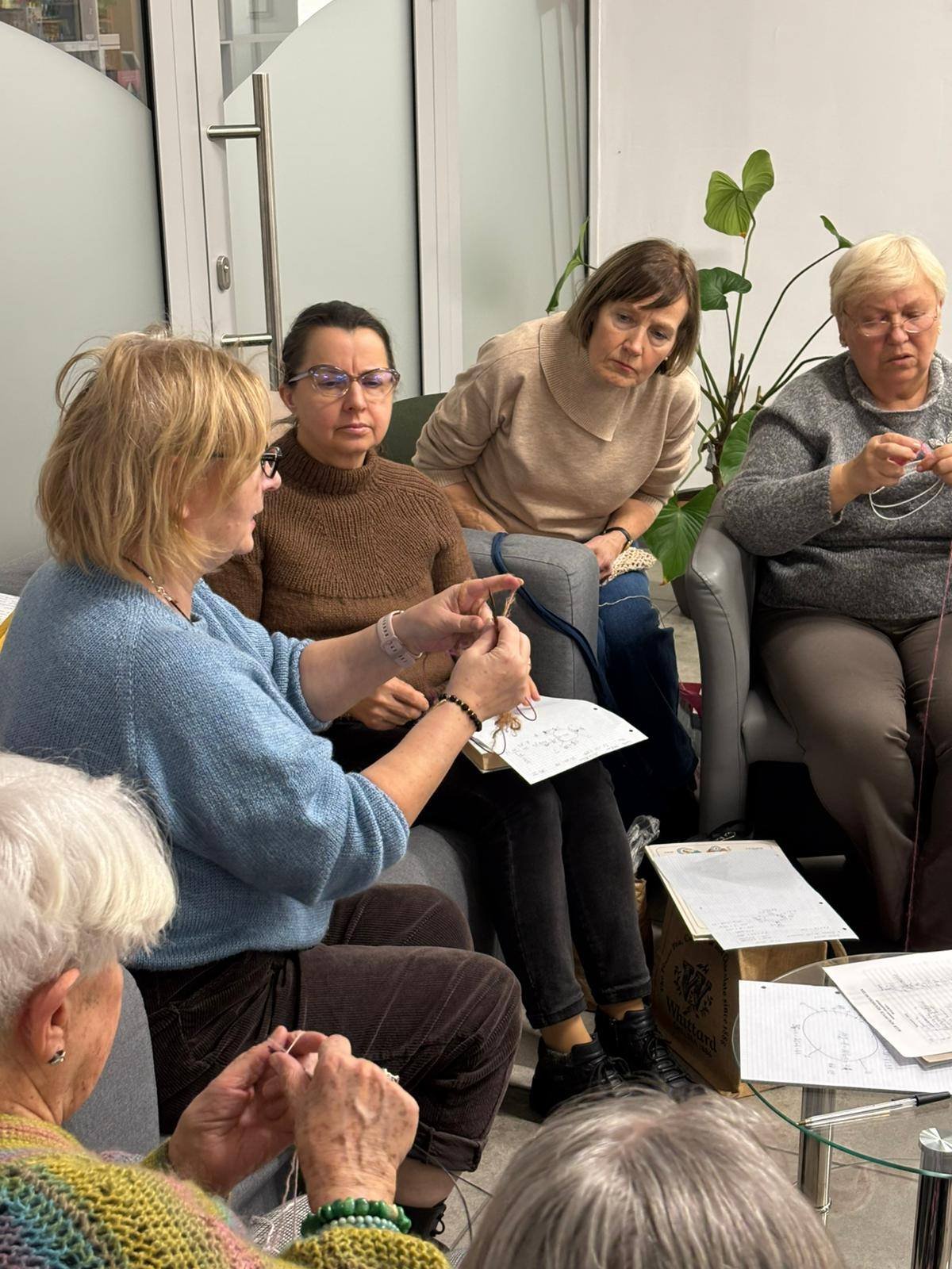 Zaczęłyśmy od „wyższej szkoły jazdy”. Próbki, notatki, wyliczanie obwodu głowy... było sporo nauki, ale i mnóstwo satysfakcji. Mimo parujących głów, każda z nas odniosła sukces – wyszła z warsztatów z „zaczątkiem” własnego swetra. Już nie możemy się doczekać, aż zobaczycie efekty